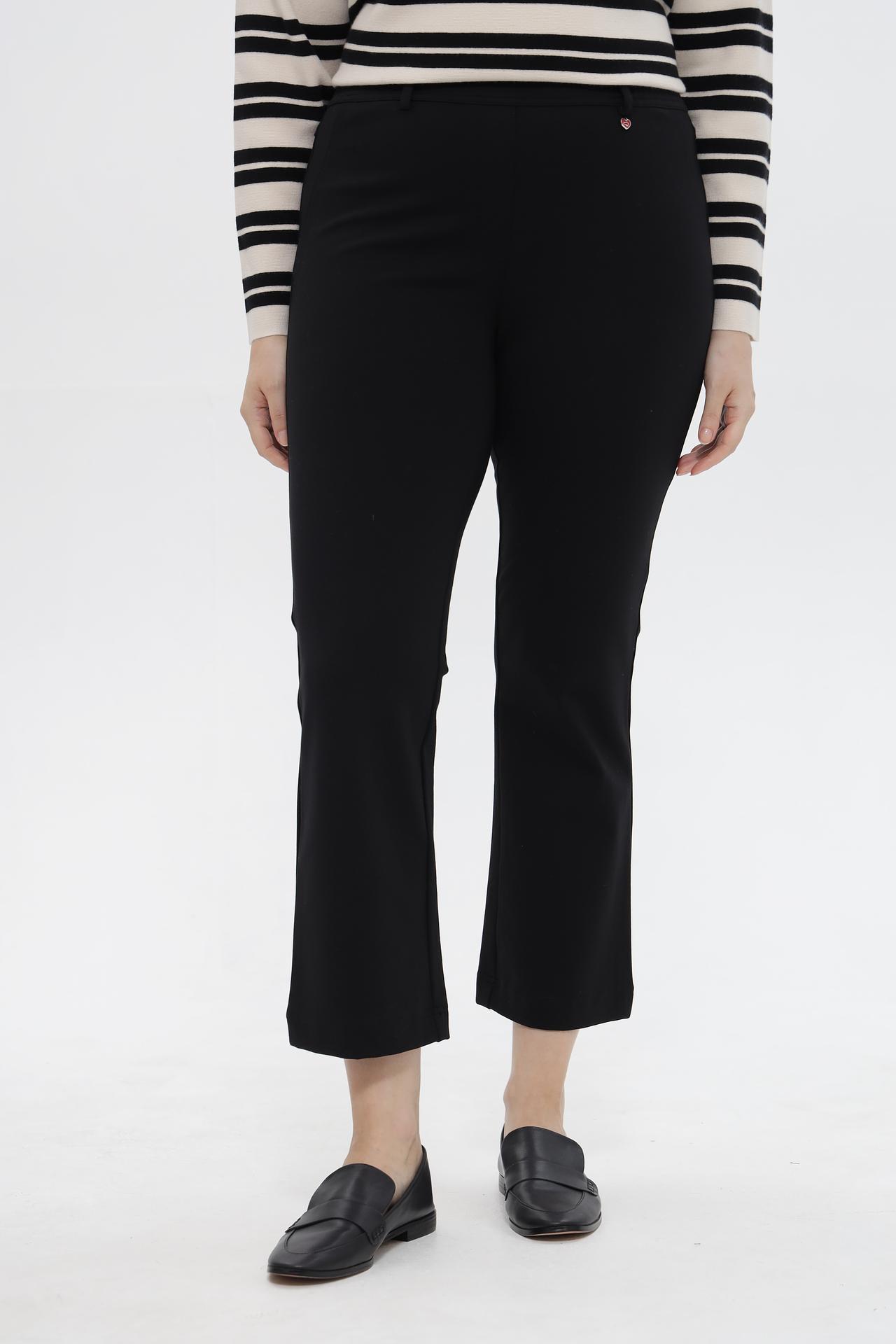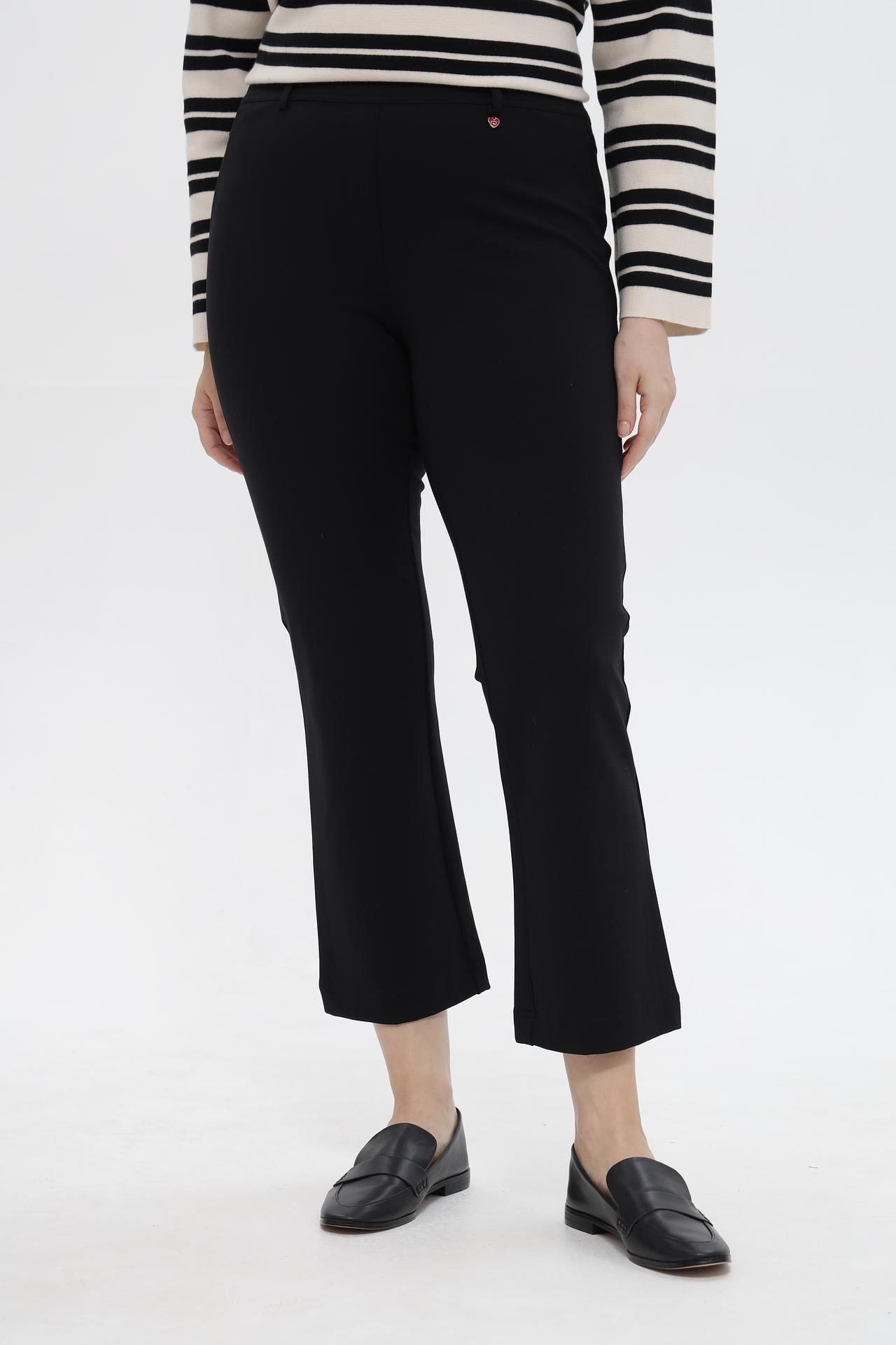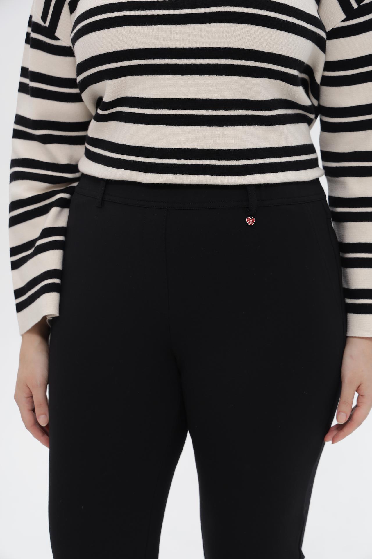 - Дизайн: Классический черный цвет делает брюки универсальной основой для множества нарядов. Изящная фурнитура в виде небольшого красного сердечка добавляет модели деликатную изюминку.