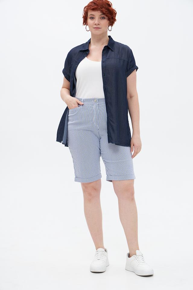 Эти шорты от Relaxed by Toni станут отличным дополнением к вашему летнему гардеробу. Модель выполнена в синем цвете с вертикальной полоской, что визуально вытягивает силуэт.
