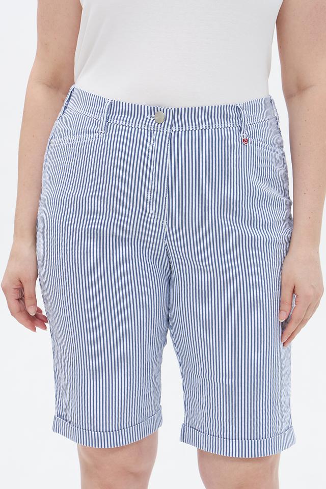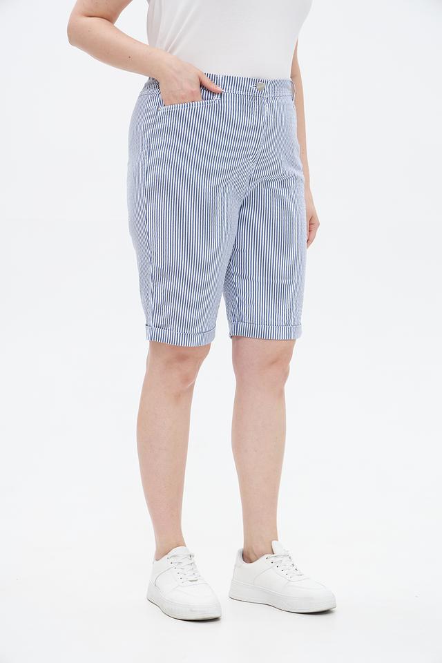 Женские шорты Relaxed by Toni синего цвета в классическую полоску – удобная и стильная модель для повседневной носки. Шорты выполнены из хлопка с добавлением полиамида и эластана, что обеспечивает комфорт и свободу движений. Состав: хлопок 65%, полиамид 30%, эластан 5%