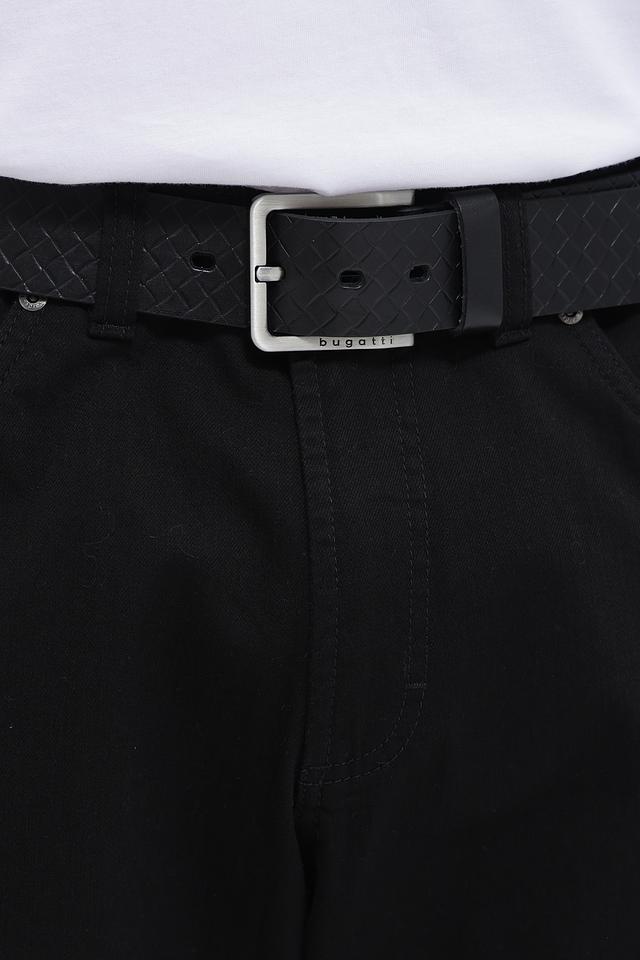 Мужской ремень Bugatti ACC чёрного цвета с фактурным плетёным дизайном и стильной металлической пряжкой. Изготовлен из высококачественной кожи, обеспечивающей долговечность и комфорт в носке. Состав: кожа 100%
