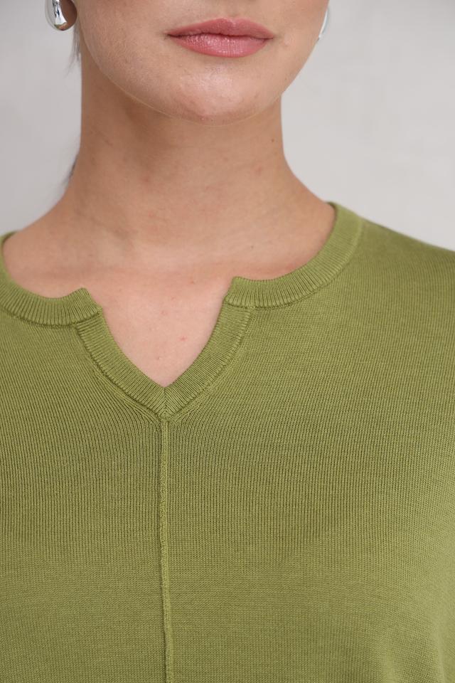 Пуловер Repeat оливковый с V-образным вырезом