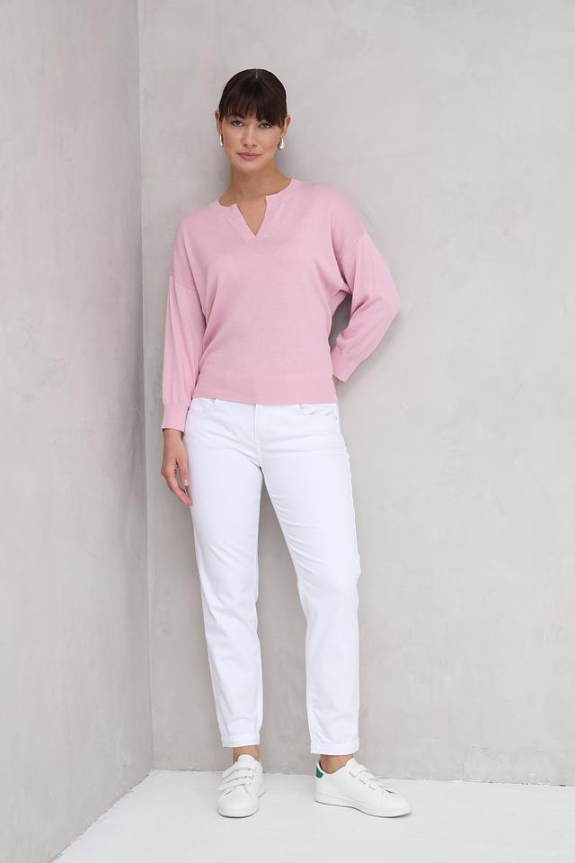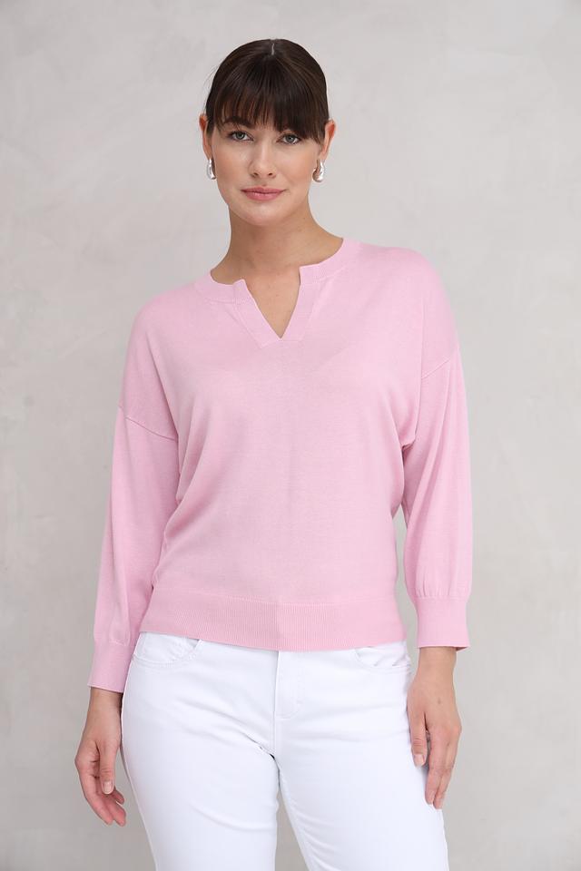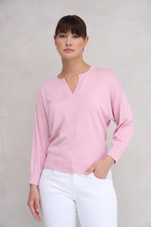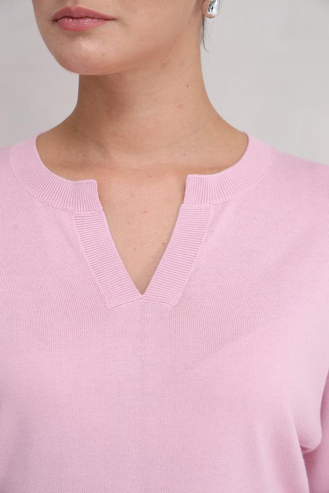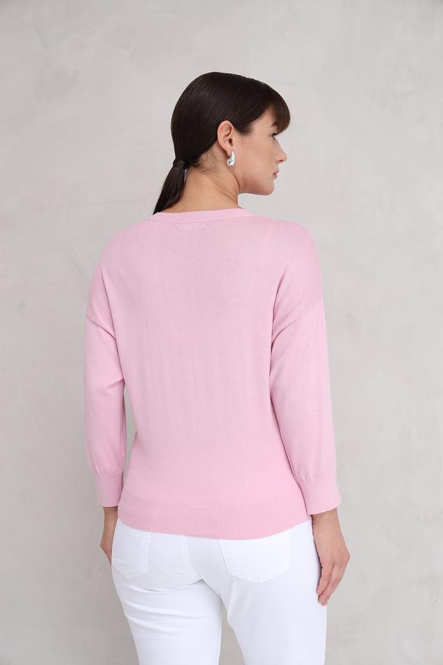 Розовый пуловер Repeat из мягкого трикотажа станет отличным дополнением к вашему гардеробу. Модель имеет удобный V-образный вырез и рукава 3/4, что делает ее универсальной для создания различных образов. Состав: хлопок 60%, вискоза 40%