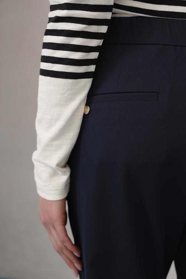 Представляем элегантные брюки классического кроя от бренда Rich and Royal. Эта модель выполнена в насыщенном темно-синем цвете, который легко сочетается с различными элементами гардероба.