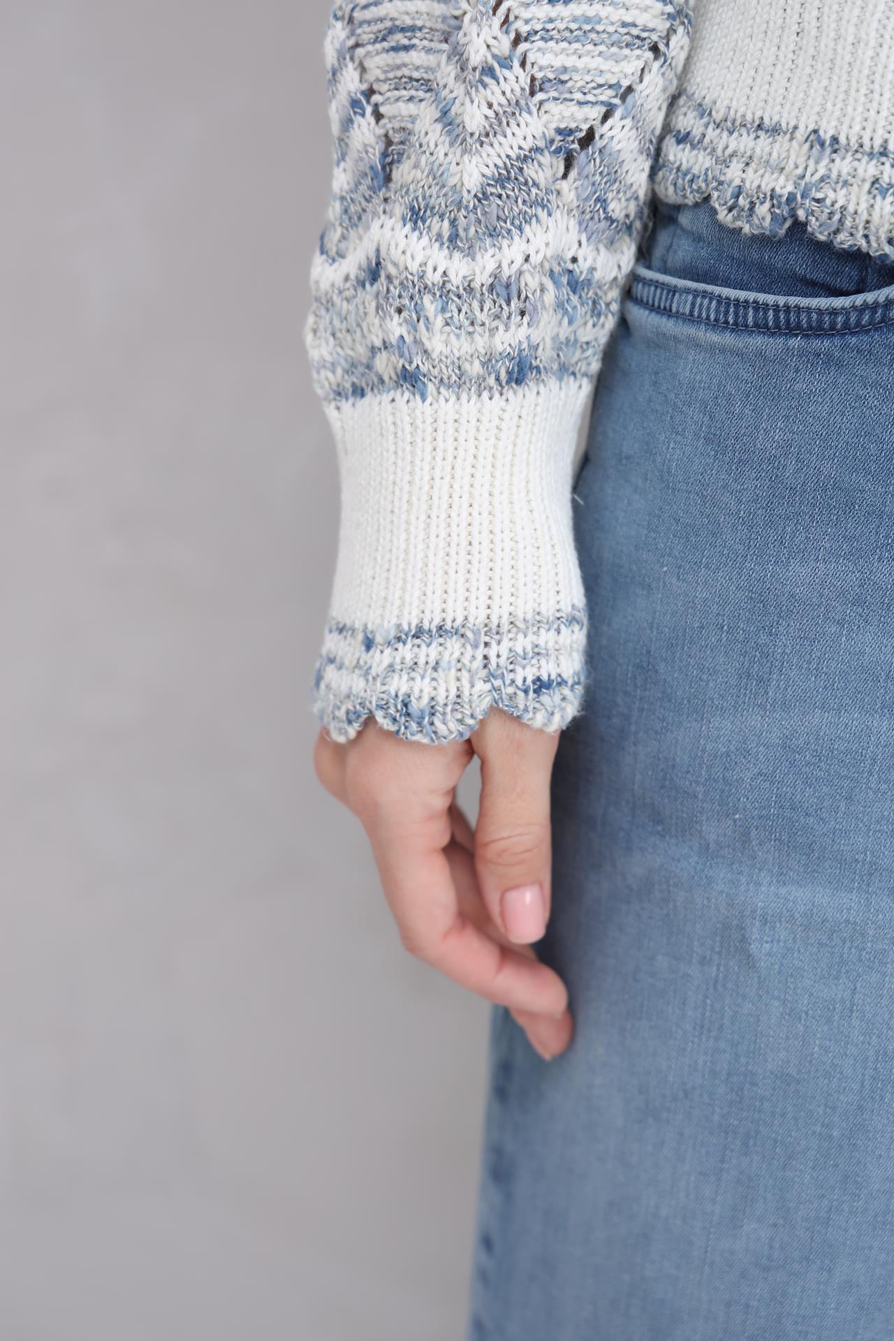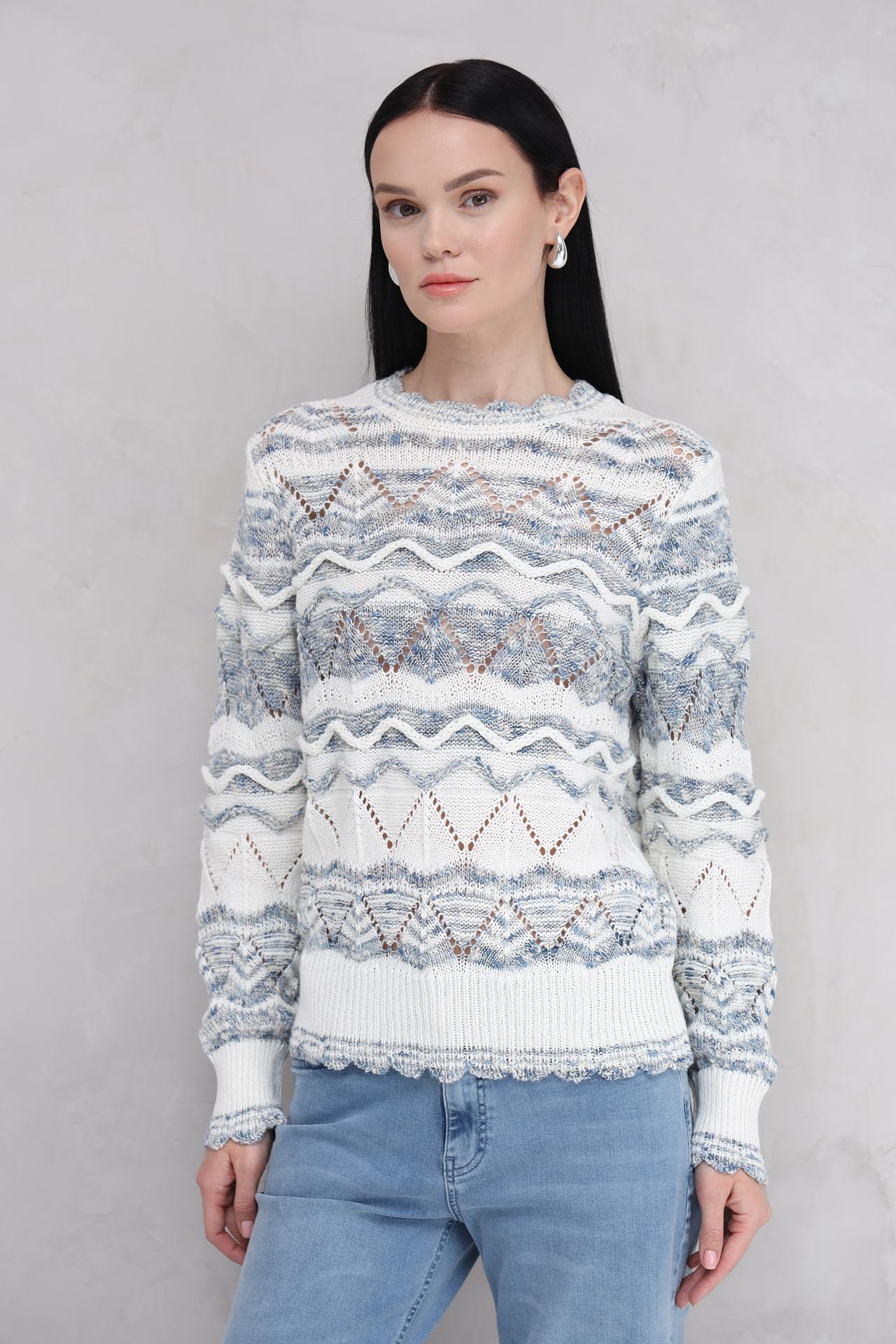 Бело-голубой пуловер Rich and Royal с ажурным узором