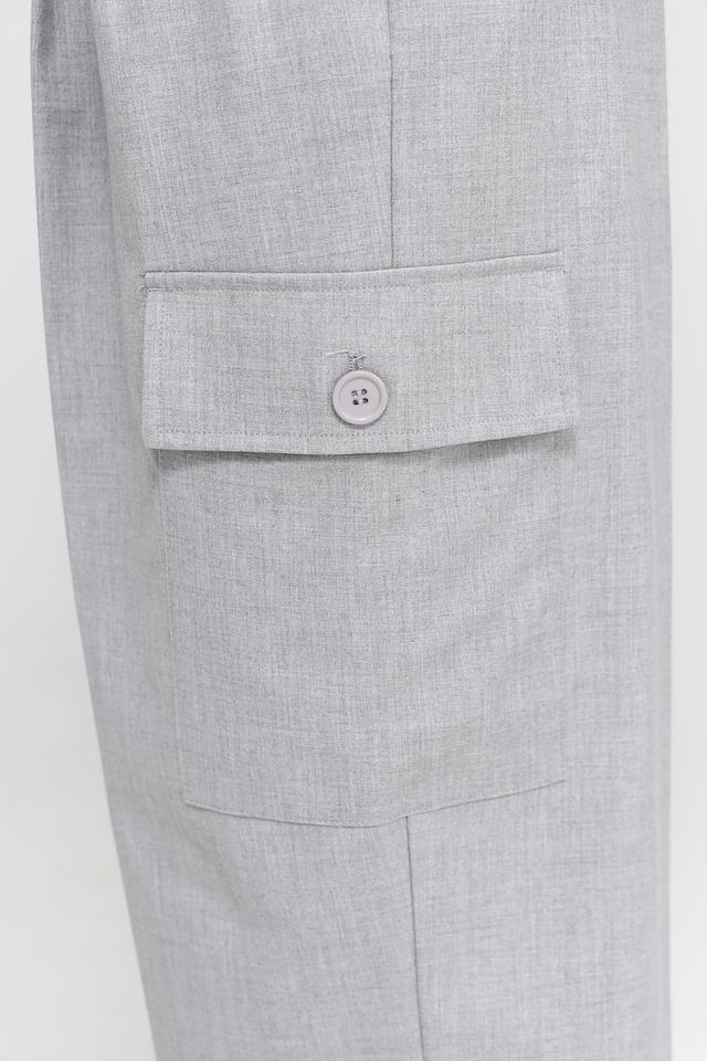 Изделие дополнено функциональными карманами, включая накладные карманы в стиле карго. Состав ткани: 63% полиэстер, 33% вискоза, 4% эластан. Этот микс обеспечивает приятные тактильные ощущения, хорошую драпировку и устойчивость к сминанию.