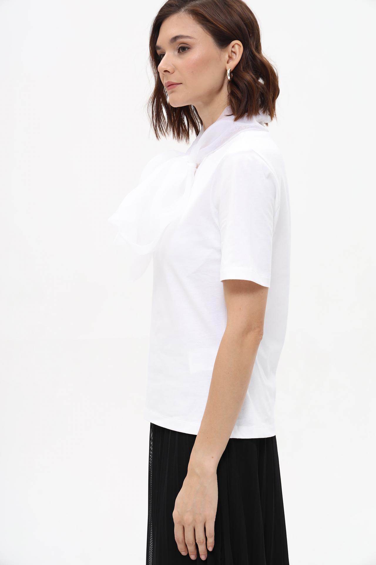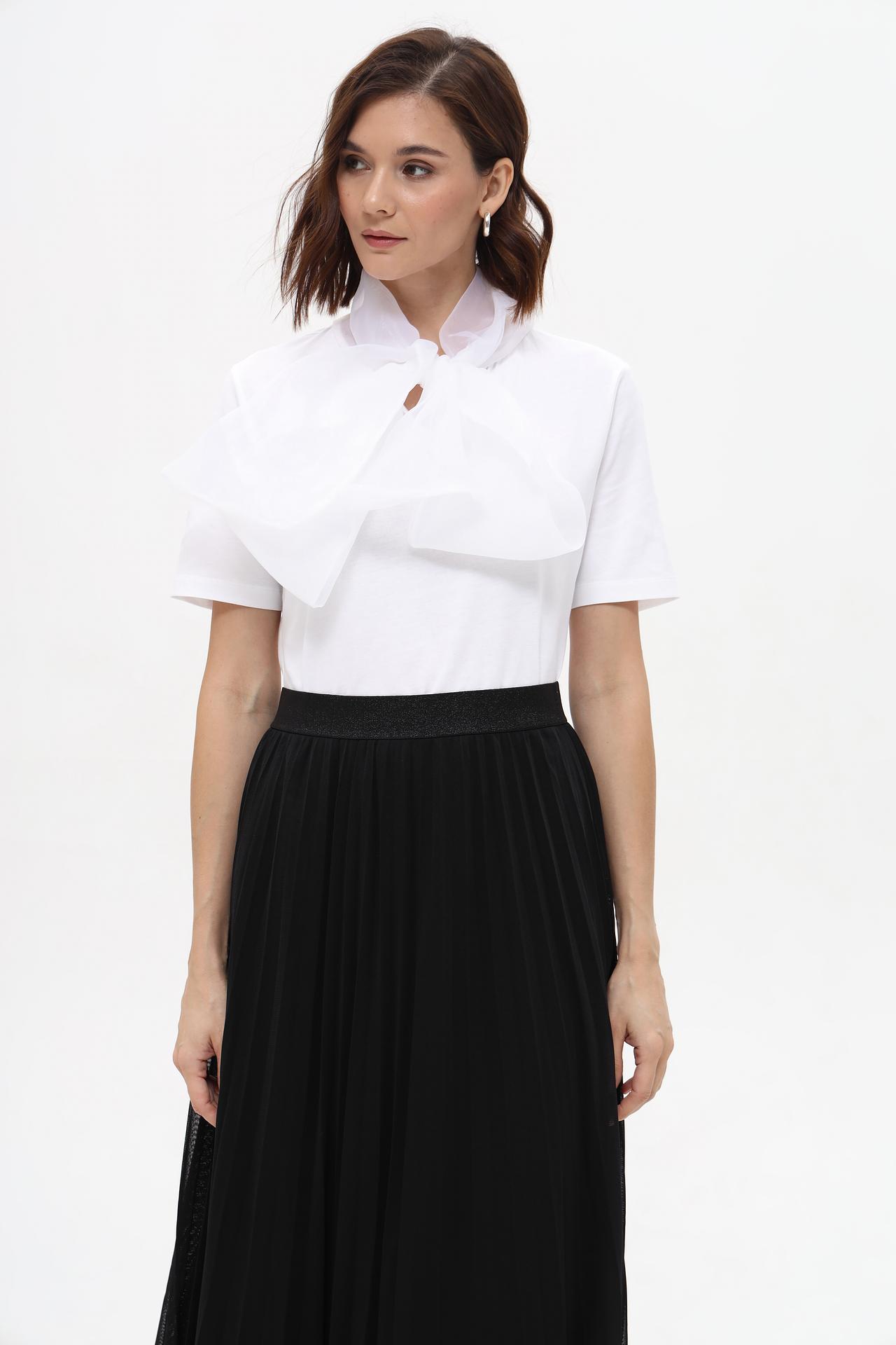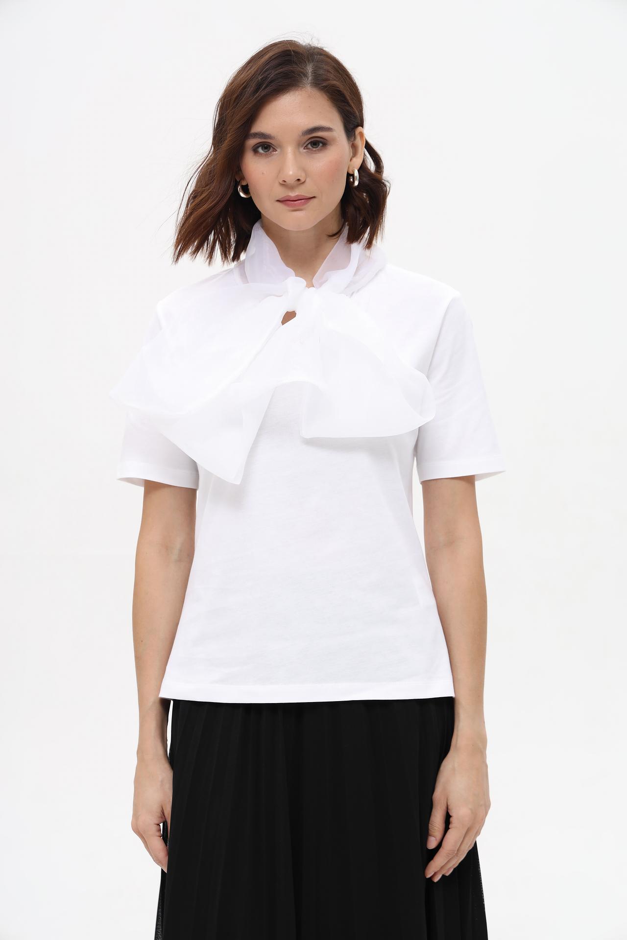 - Чистота цвета: Классический белый цвет делает эту блузу незаменимой вещью для создания свежих и элегантных образов. Белая блуза легко вписывается в любой стиль, от строгого офисного до романтического повседневного.