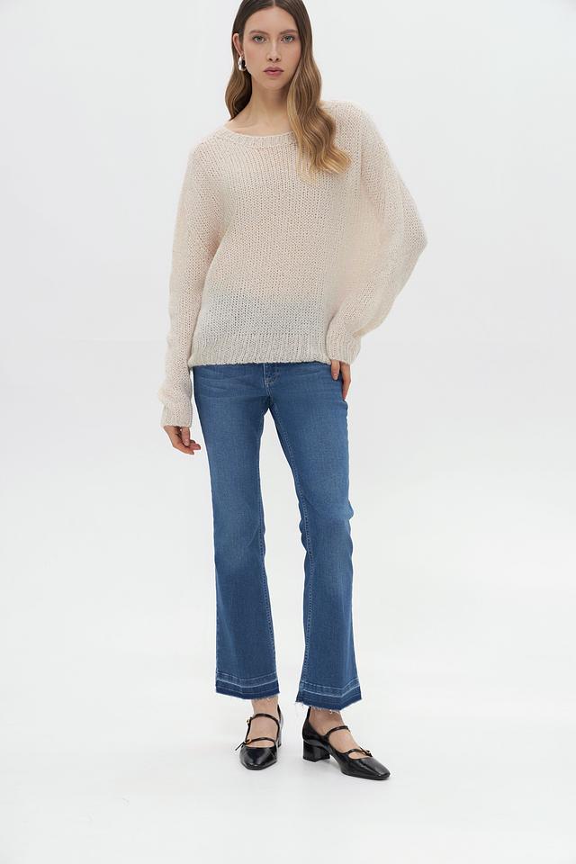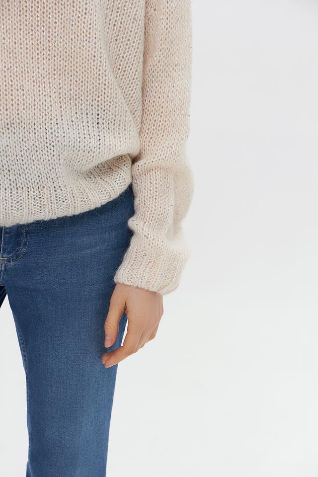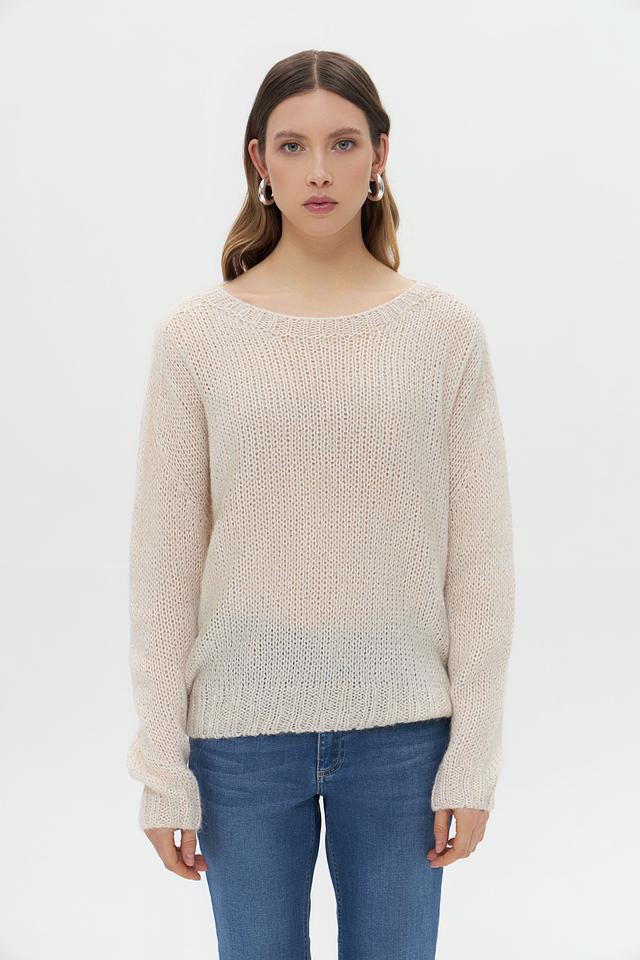 Бежевый пуловер от Rich and Royal из мягкой пряжи с добавлением альпаки и шерсти. Модель свободного кроя с округлым вырезом горловины и рукавами реглан. Состав: полиэстер 44%, полиакрил 19%, полиамид 18%, альпака 14%, шерсть 3%, мохер 2%
