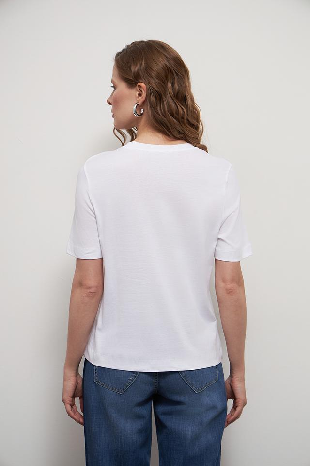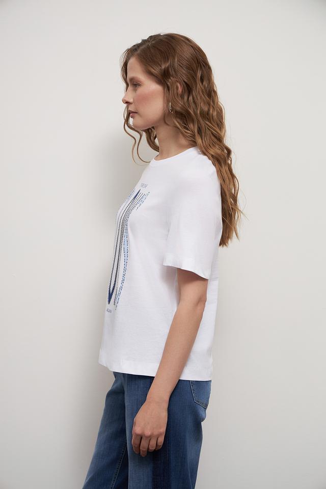 Футболка имеет прямой крой, короткие рукава и круглый вырез горловины. Она прекрасно сочетается с джинсами, шортами или юбками, позволяя создавать разнообразные образы. Эта модель станет незаменимой вещью в вашем повседневном гардеробе.