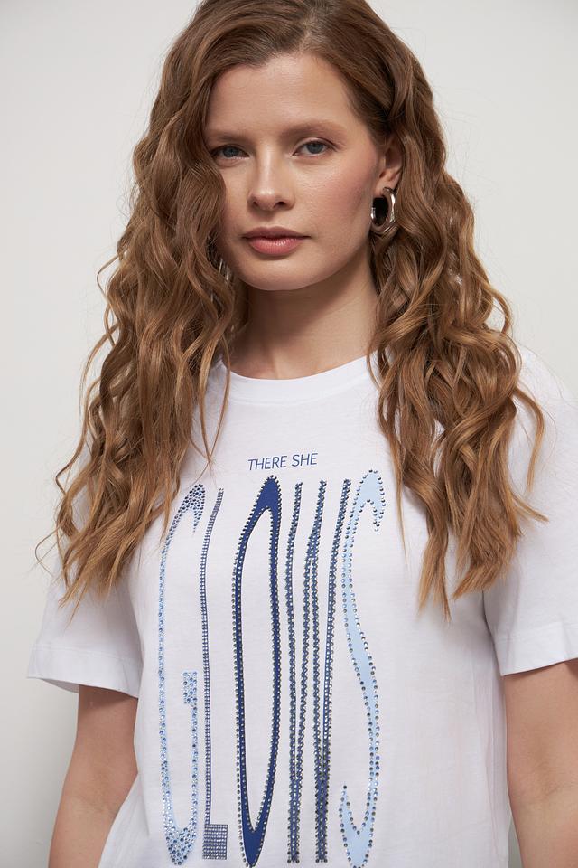 Белая футболка Rich and Royal с эффектным принтом "GLOWS". Изготовлена из 100% хлопка, обеспечивающего комфорт и воздухопроницаемость. Идеальный выбор для создания стильного повседневного образа. Состав: хлопок 100%