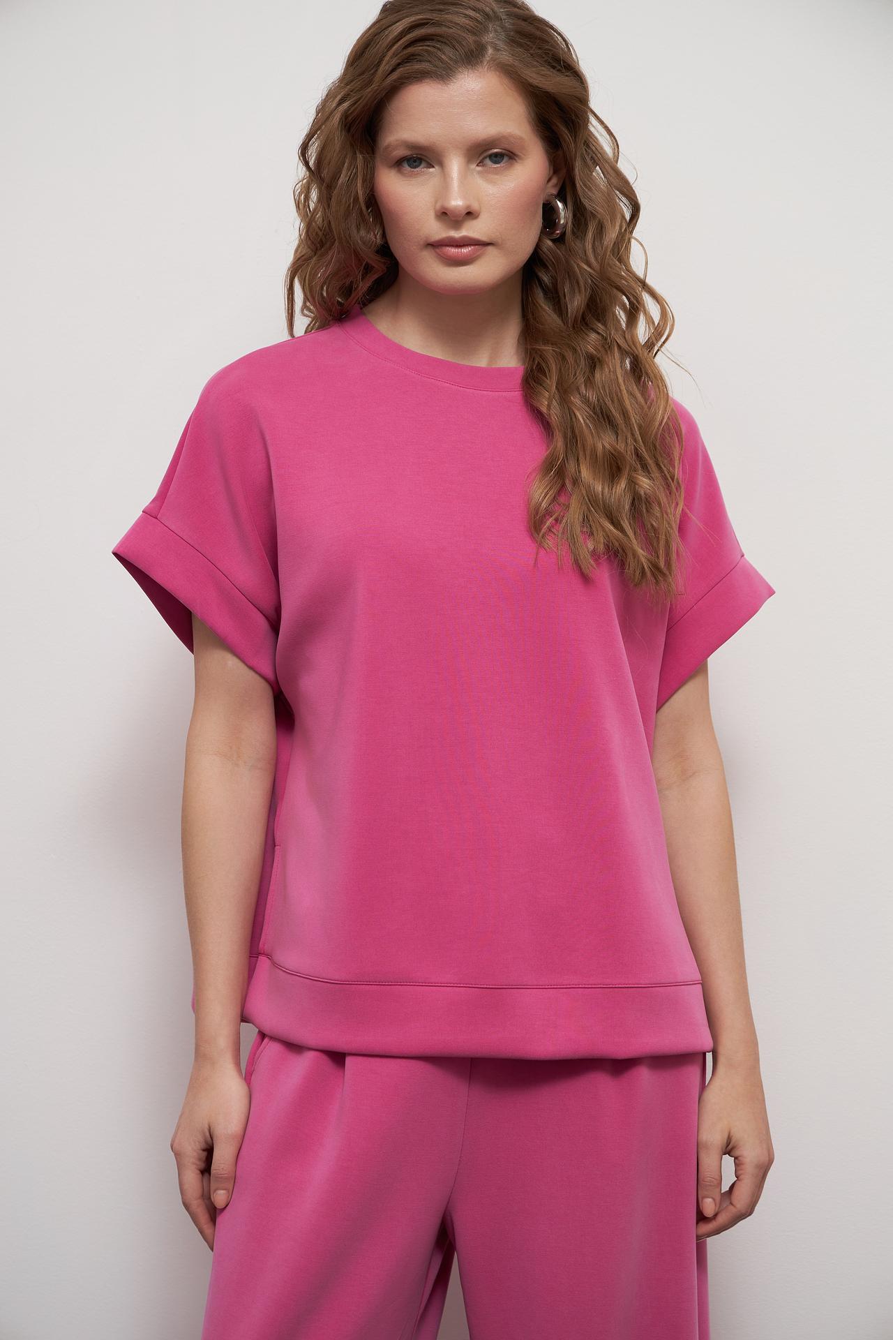 Элегантный пуловер Rich and Royal ярко-розового оттенка станет идеальным дополнением к повседневному или спортивному гардеробу. Изготовлен из высококачественного трикотажа, включающего 52% модала, 42% полиэстера и 6% эластана, что обеспечивает невероятную мягкость, комфорт и отличную посадку. Свободный крой и аккуратные отвороты на рукавах придают изделию современный и расслабленный вид, подчеркивая вашу индивидуальность.