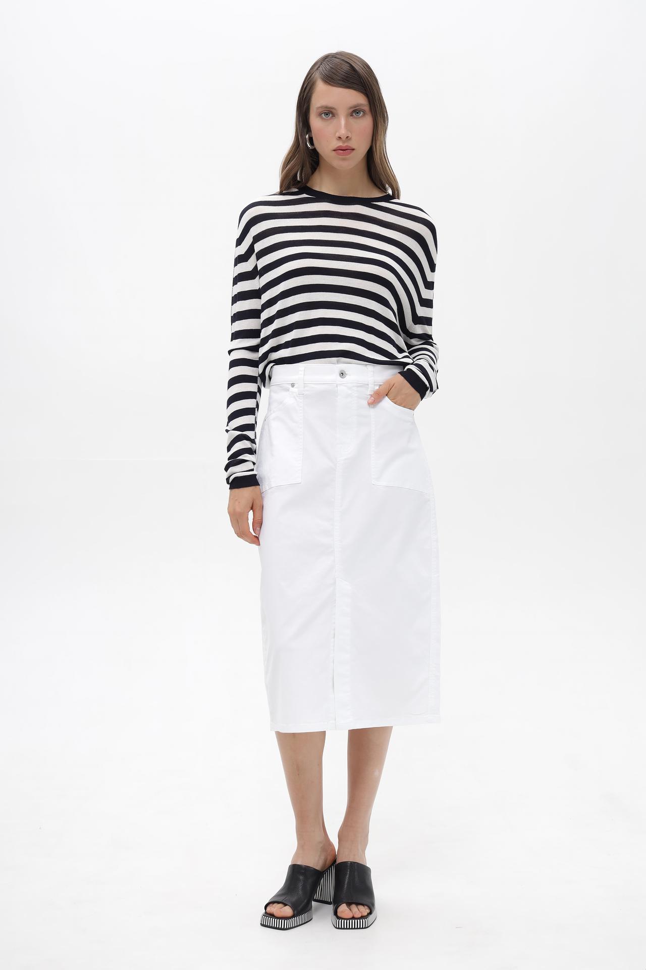 - Универсальный дизайн. Классический полосатый принт и базовые цвета позволяют легко сочетать пуловер с различными элементами гардероба. Создавайте актуальные и модные образы, от деловых до расслабленных.