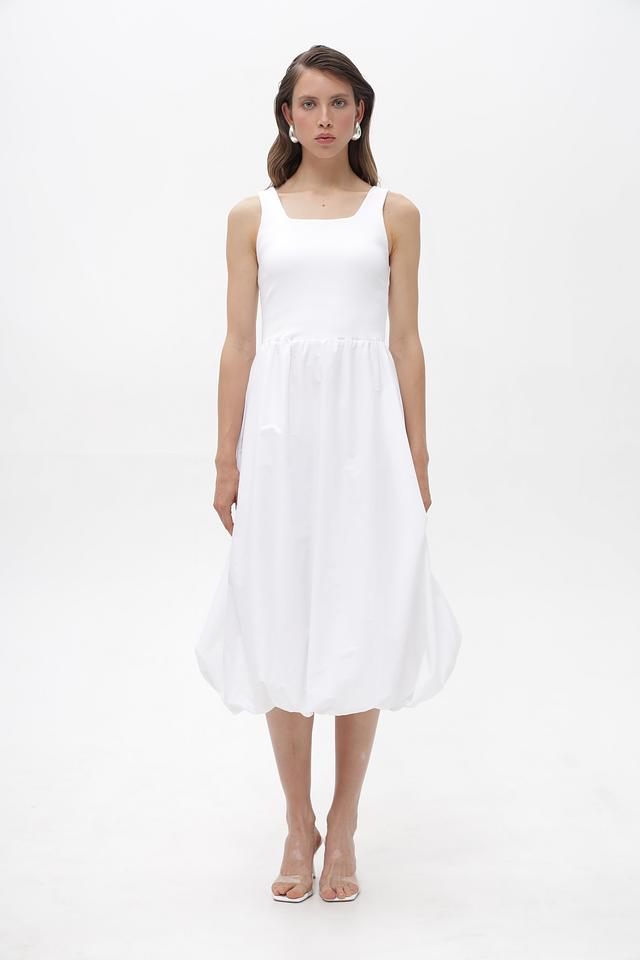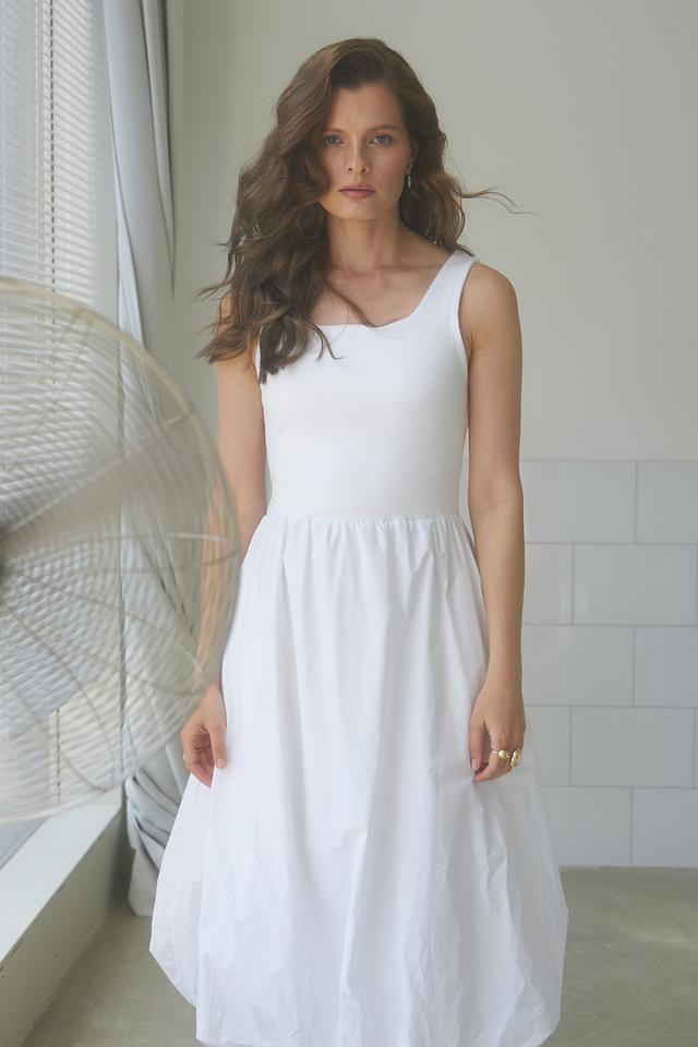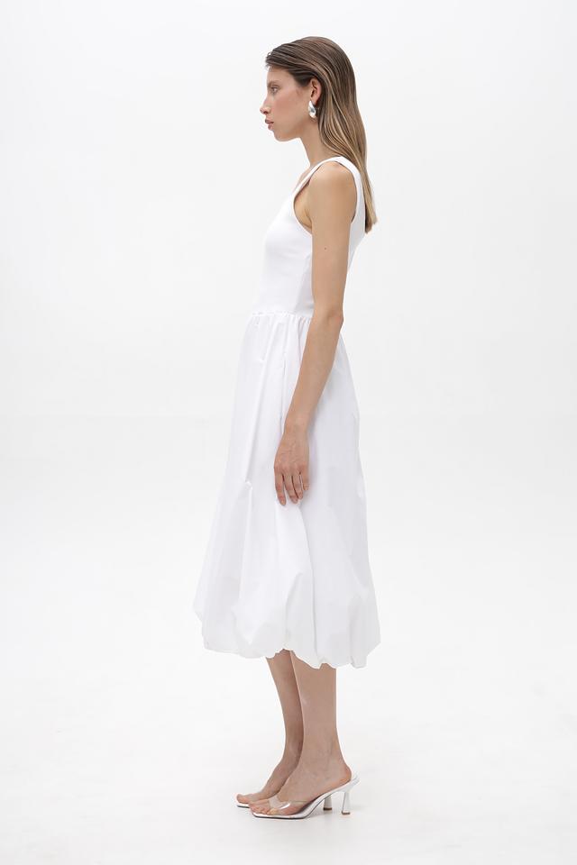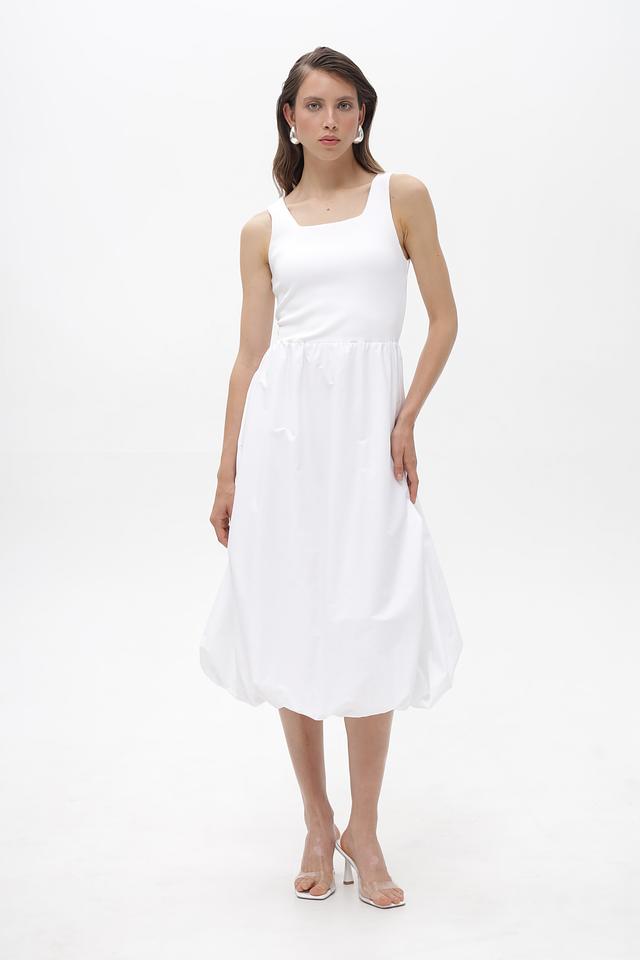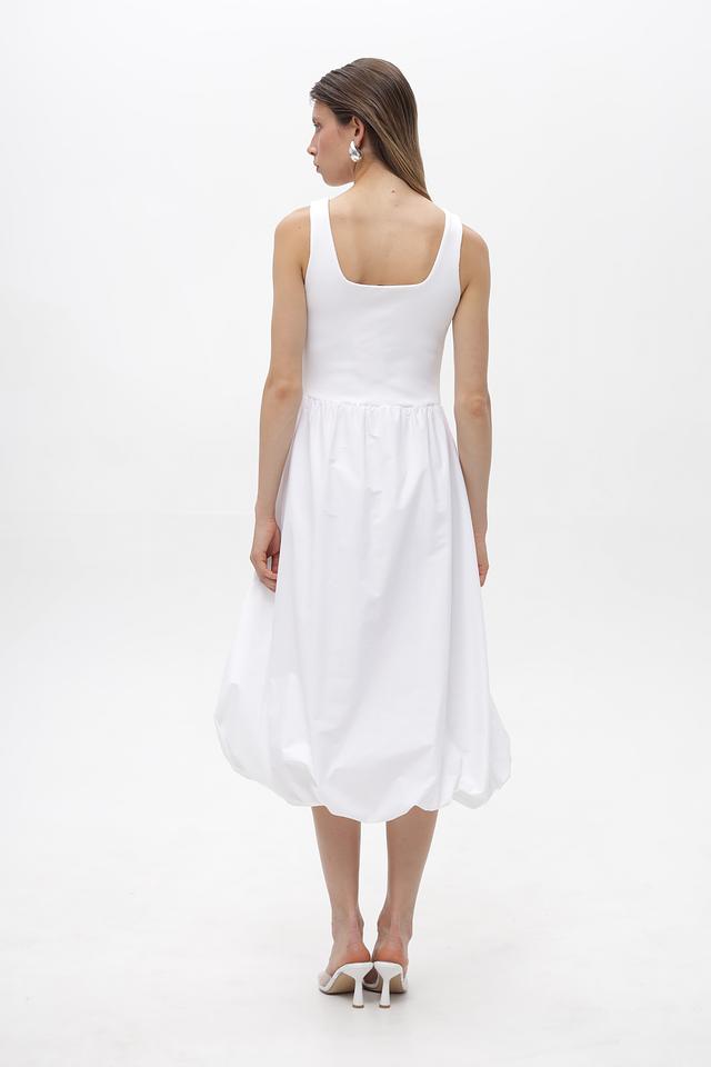 Белое платье Rich and Royal из хлопка с воздушной юбкой-баллон и квадратным вырезом. Модель выполнена из мягкой ткани с добавлением эластана для комфорта и свободы движений. Идеальный выбор для создания легкого и стильного образа. Состав: хлопок 95%, эластан 5%