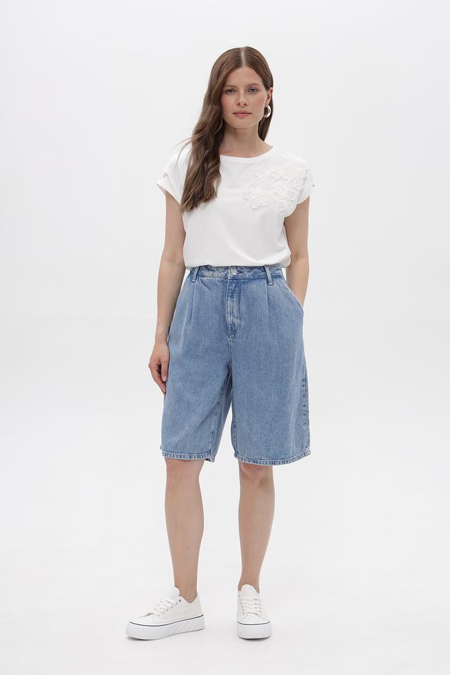Шорты имеют завышенную талию, которая визуально удлиняет ноги и подчеркивает фигуру. Широкие штанины обеспечивают комфорт и свободу движений.