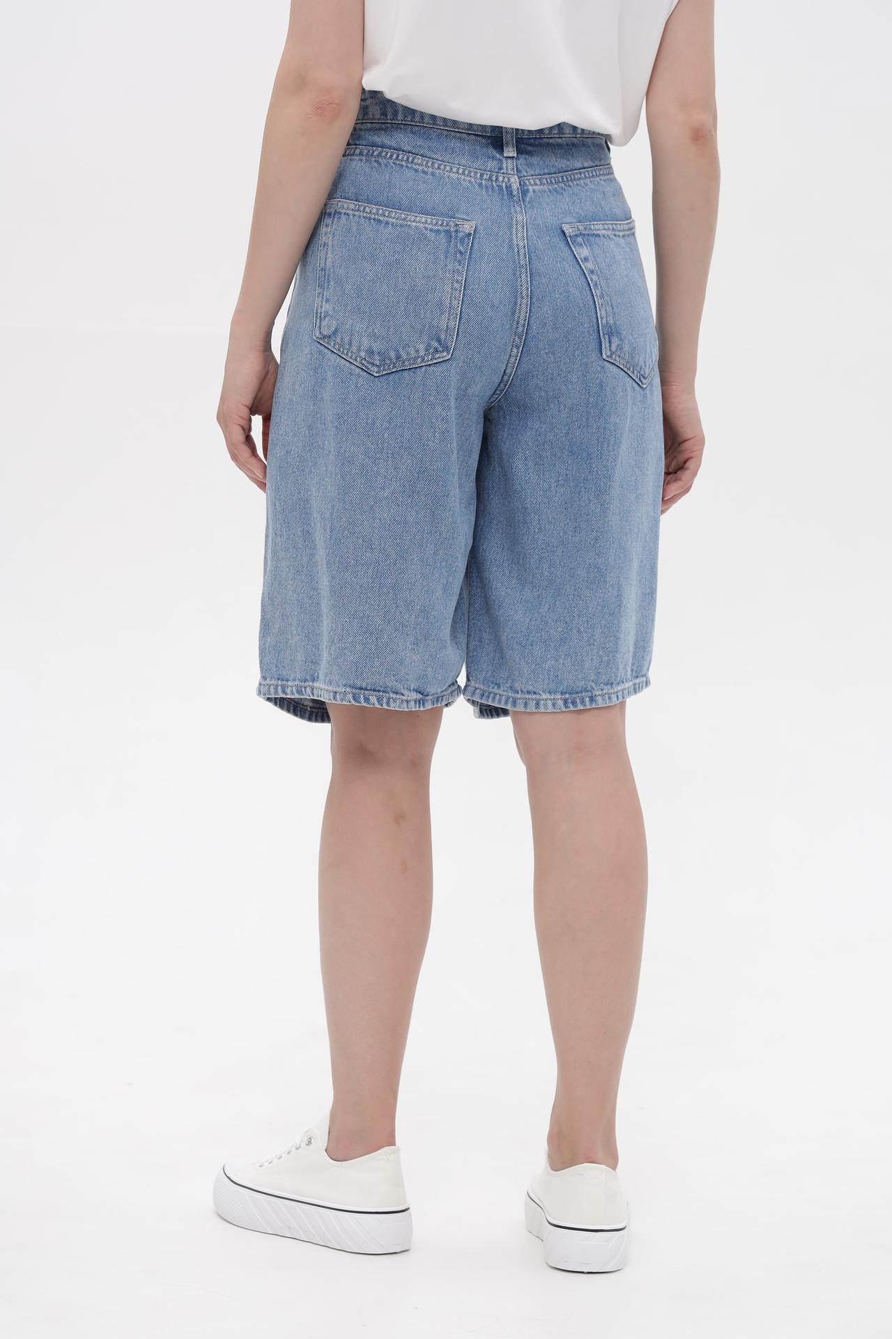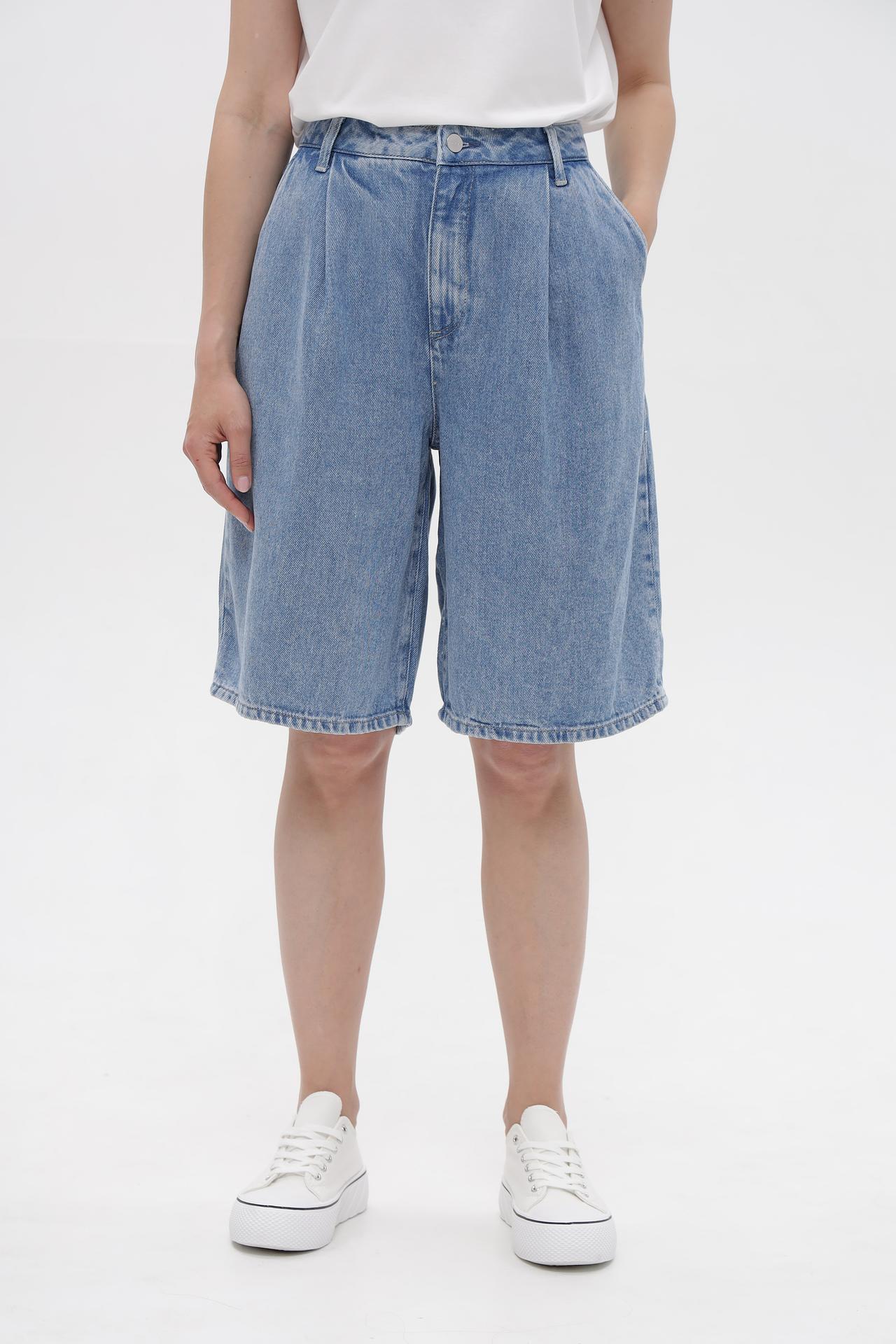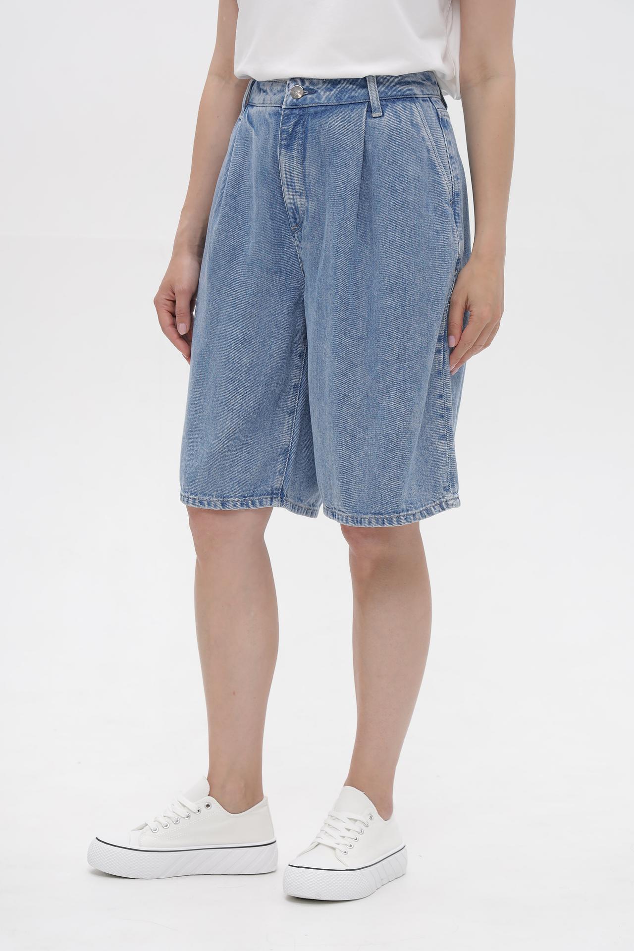 - Универсальный дизайн: Голубой джинсовый оттенок и классический силуэт с защипами на талии делают шорты легко сочетаемыми с различными элементами гардероба. Высокая посадка визуально удлиняет ноги и подчеркивает талию.
