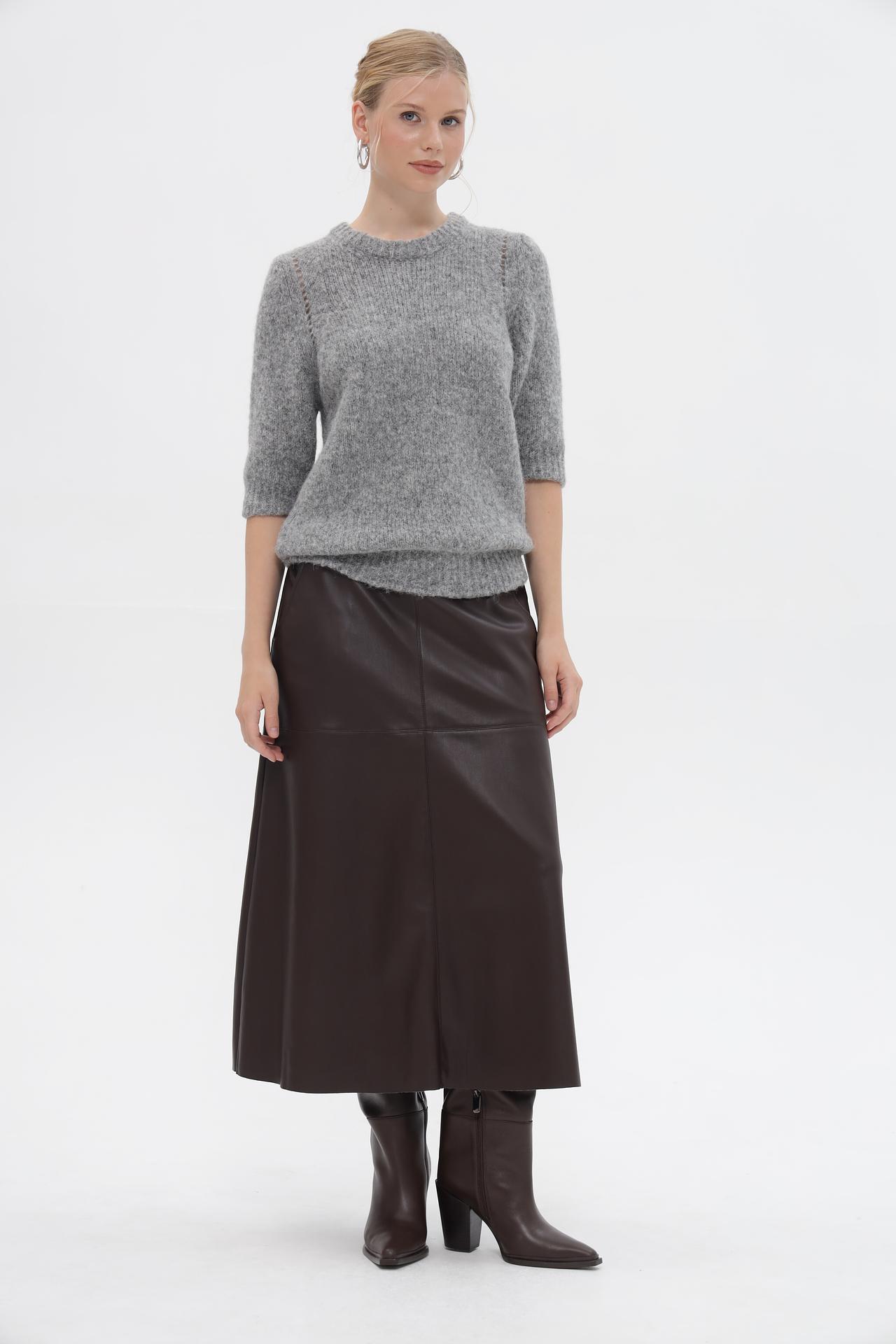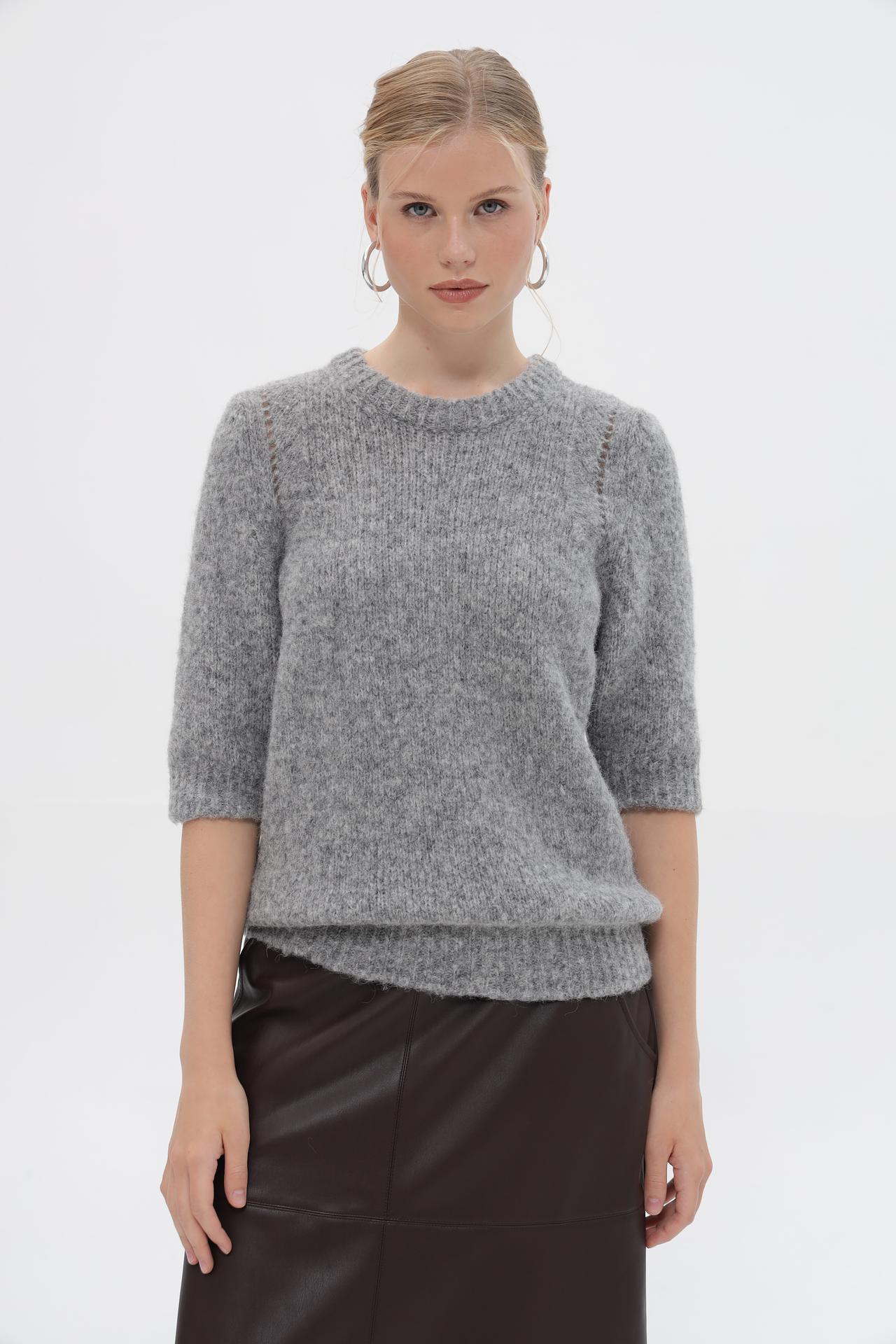 - Универсальность: Серый пуловер легко впишется в любой стиль, от повседневного до более формального, и будет отлично сочетаться как с юбками, так и с брюками.