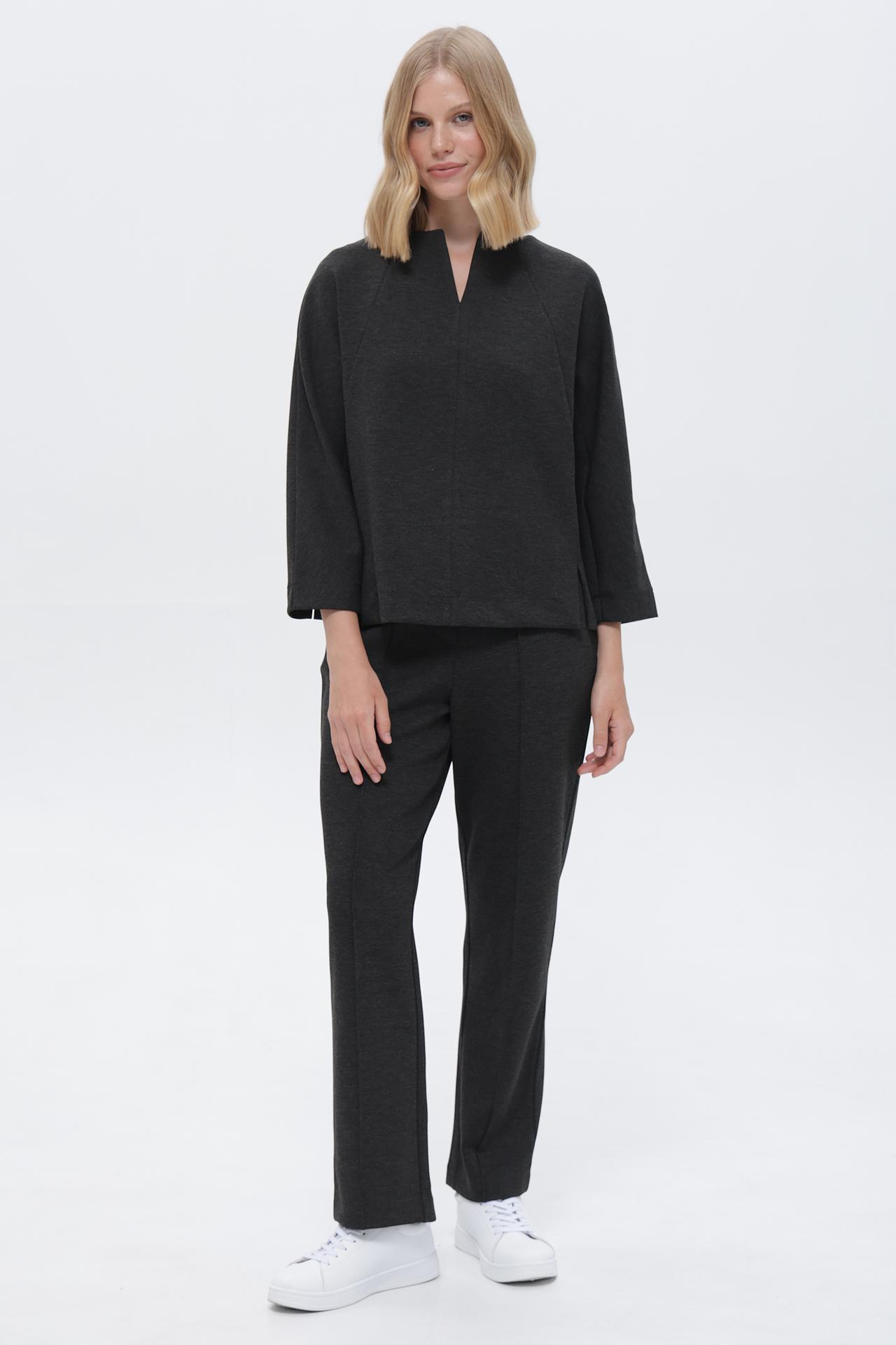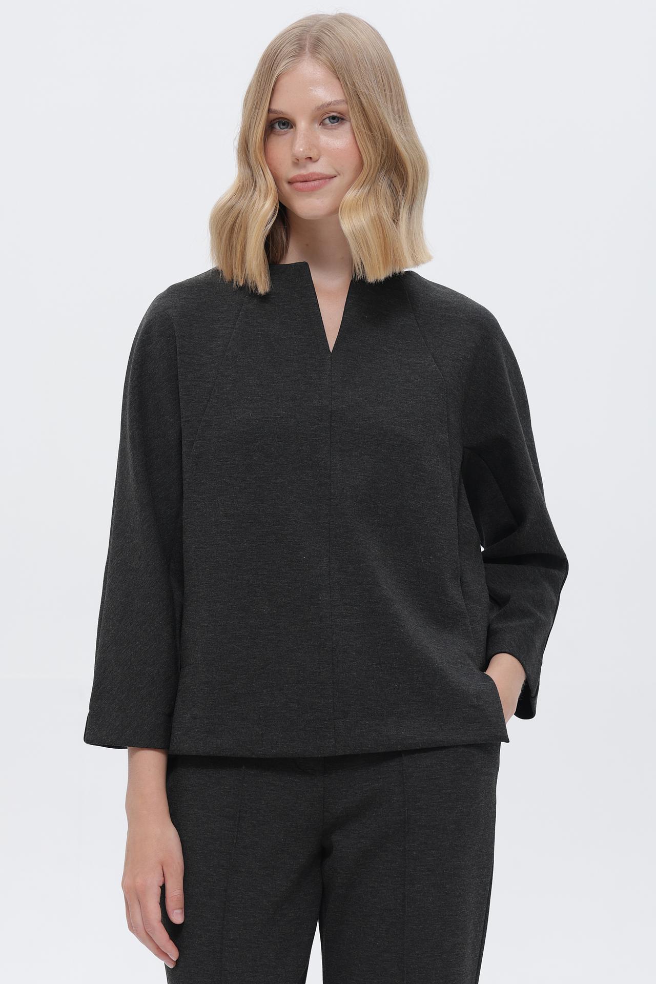 - Дизайн: Современный крой с V-образным вырезом и рукавами 3/4 подчеркивает элегантность модели. Минималистичный дизайн делает пуловер универсальным для различных образов.