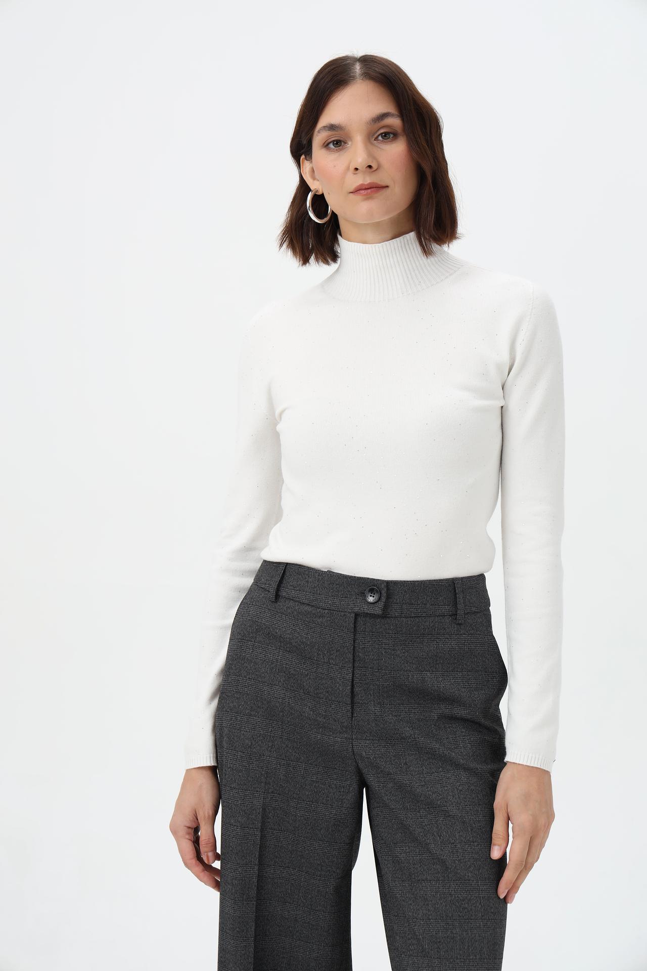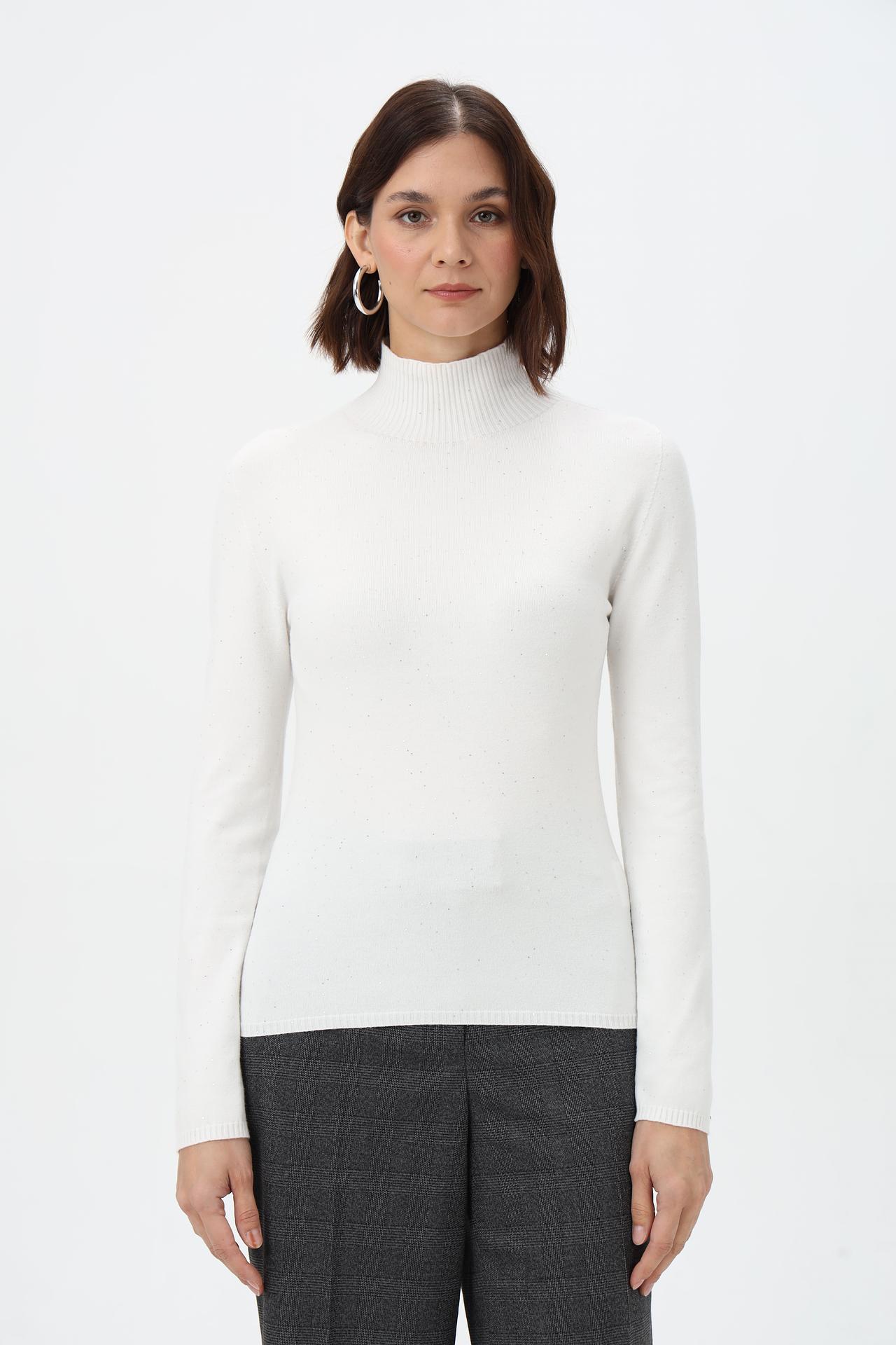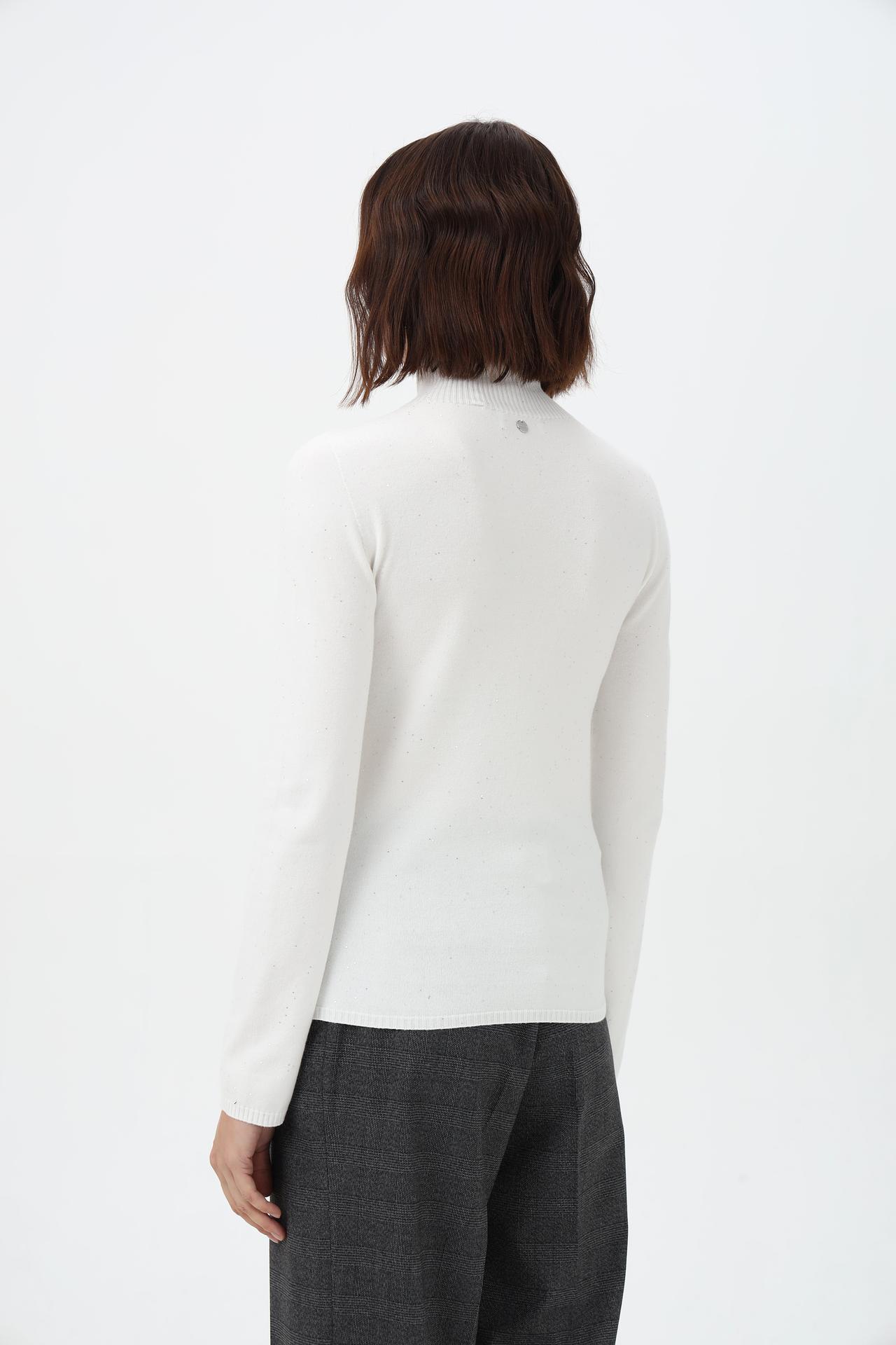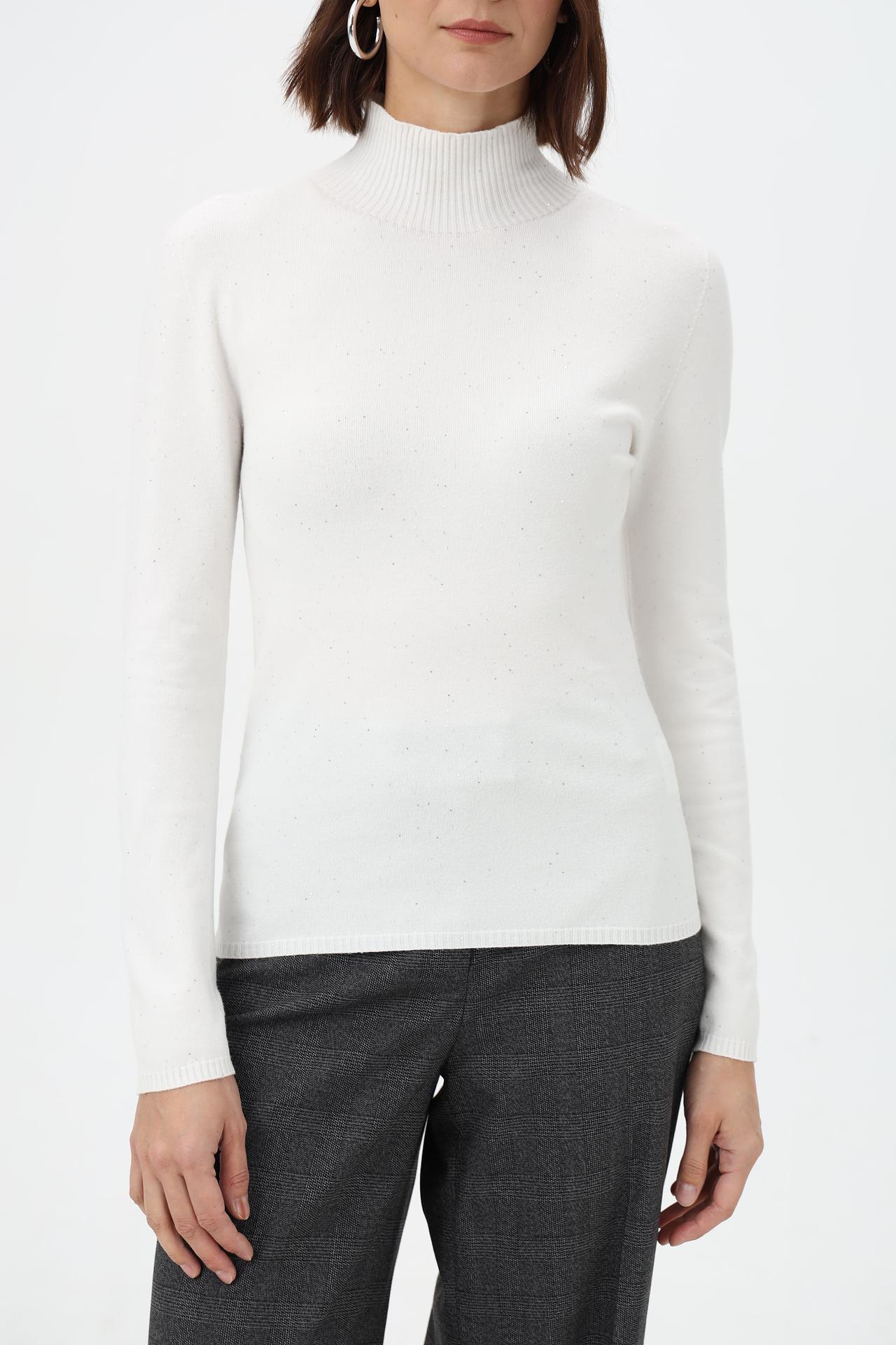 Элегантный пуловер от Rich and Royal – это универсальный предмет гардероба, который дополнит как повседневный, так и более формальный образ. Модель выполнена в классическом белом цвете и дополнена деликатным мерцающим декором, создающим эффект звездной пыли. Высокий воротник-гольф и приталенный силуэт подчеркнут достоинства фигуры, а мягкая ткань обеспечит комфорт в течение всего дня.
