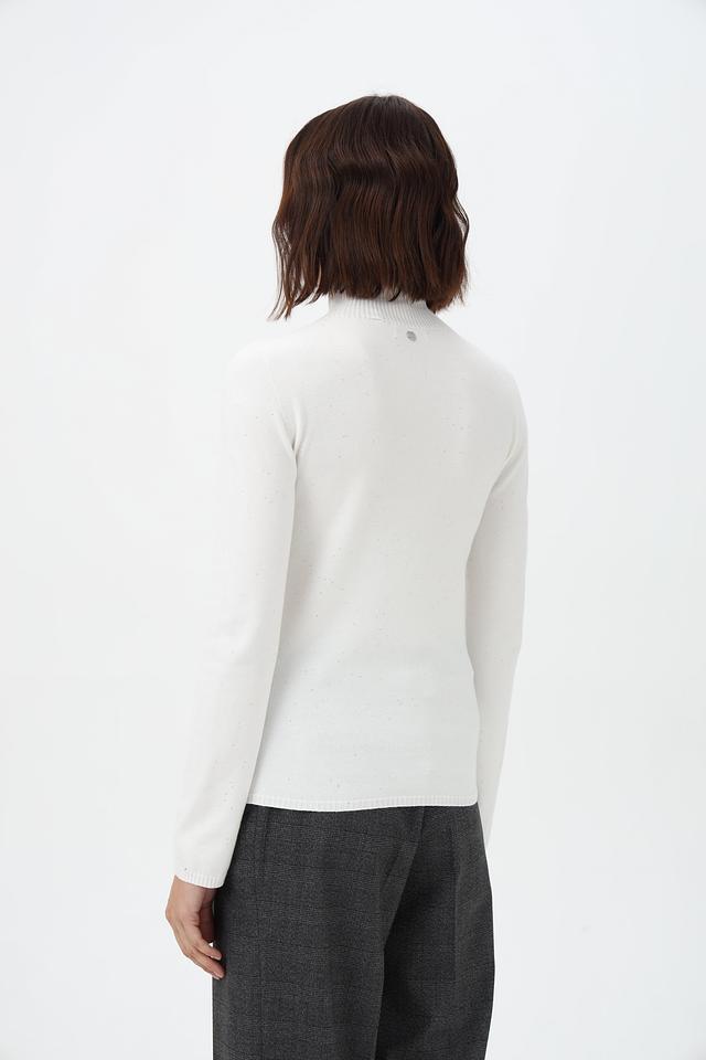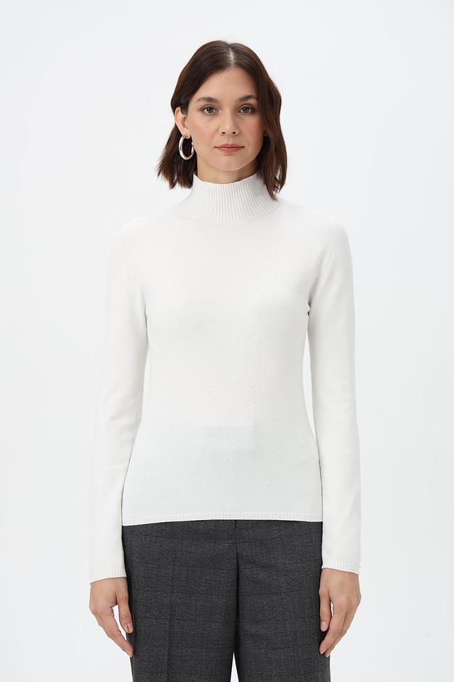Представляем вашему вниманию элегантную водолазку от бренда Rich and Royal. Модель выполнена в белом цвете с добавлением деликатного люрекса, придающего ей особый шарм и блеск.