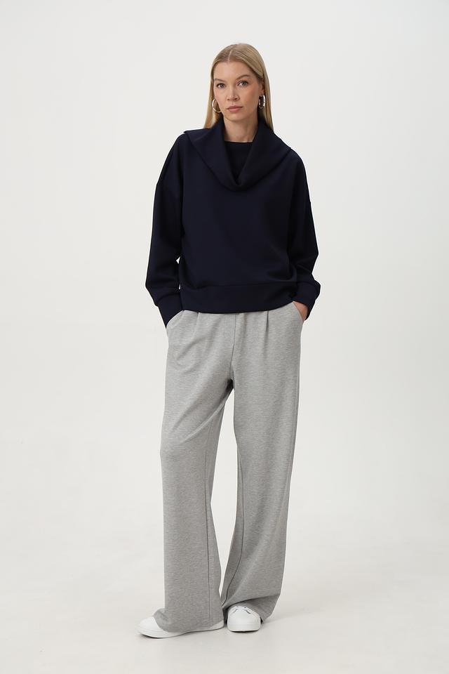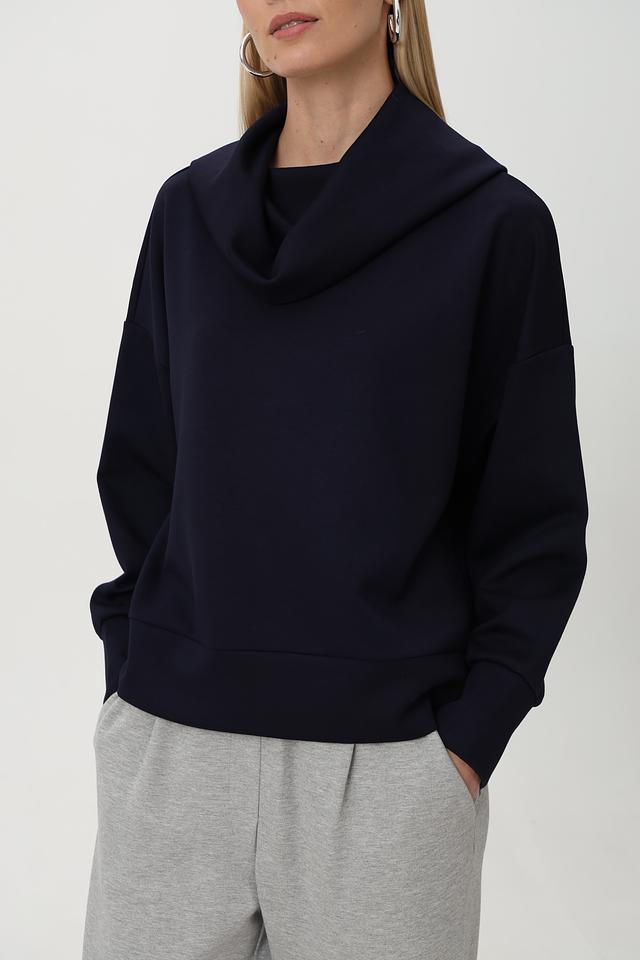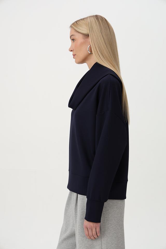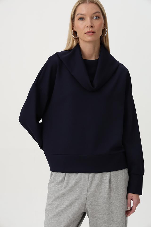 Представляем вашему вниманию стильный пуловер от бренда Rich and Royal. Модель выполнена в глубоком тёмно-синем цвете и отличается элегантным дизайном с воротником-хомутом, который придает образу изысканность.