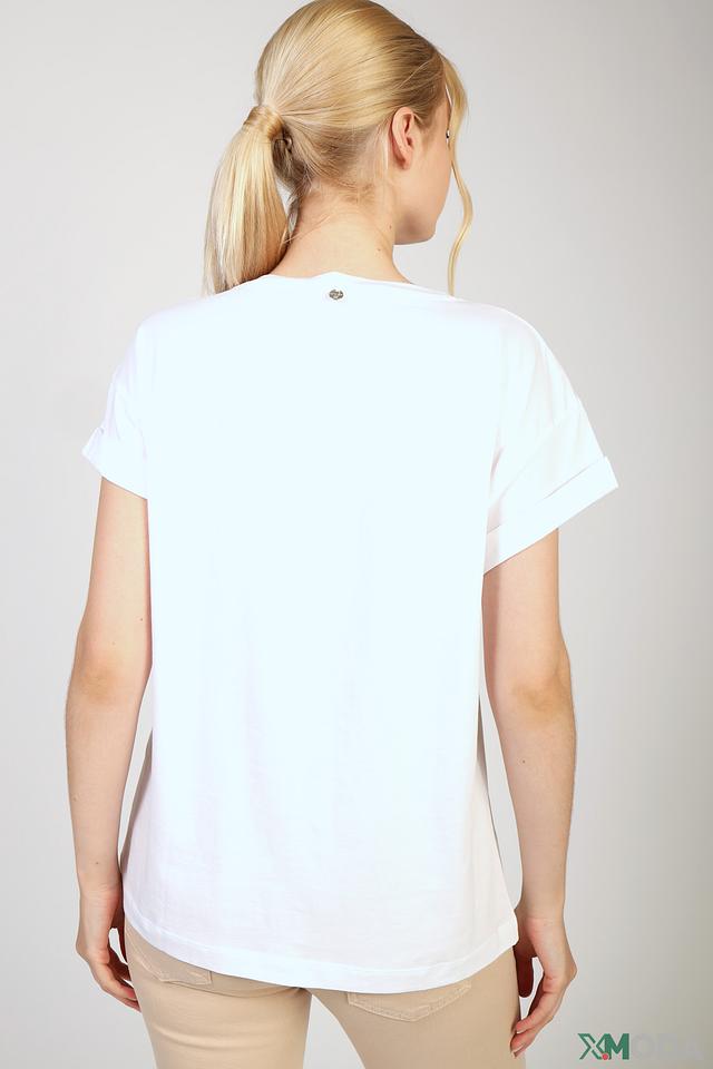 Белая футболка Rich and Royal с ярким принтом и короткими рукавами. Изготовлена из 100% хлопка, обеспечивая комфорт и воздухопроницаемость. Стильный и оригинальный выбор для повседневного образа. Состав: хлопок 100%
