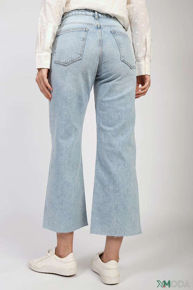 Джинсы имеют высокую посадку, которая подчеркивает талию и визуально удлиняет ноги. Клеш от колена придает образу женственность и легкость. Эффект потертости добавляет джинсам непринужденности и винтажного шарма.