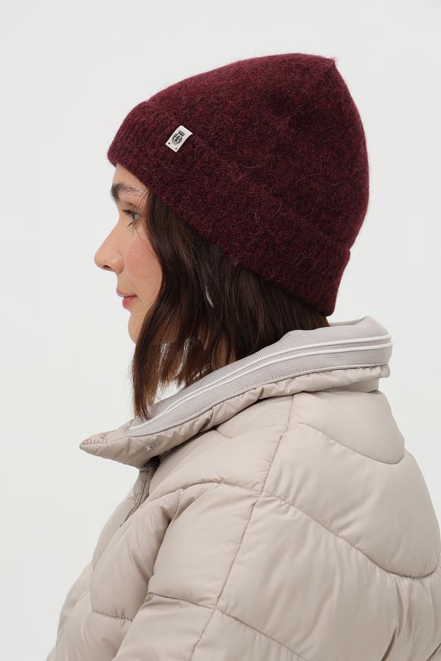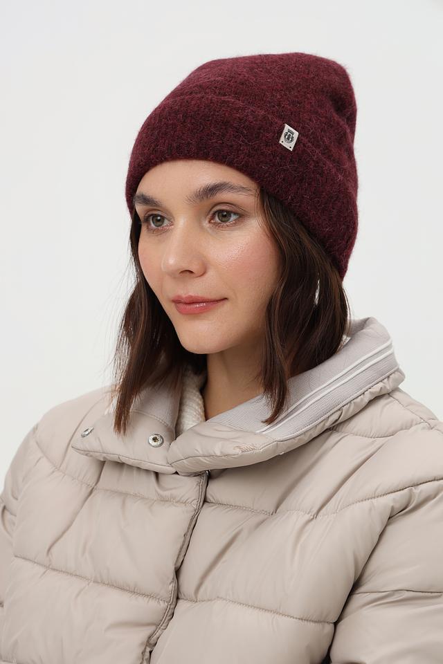 Шапка выполнена в насыщенном бордовом цвете, который легко сочетается с различными оттенками верхней одежды. Модель имеет классическую форму бини, плотно прилегающую к голове, что обеспечивает надежную защиту от ветра и холода.