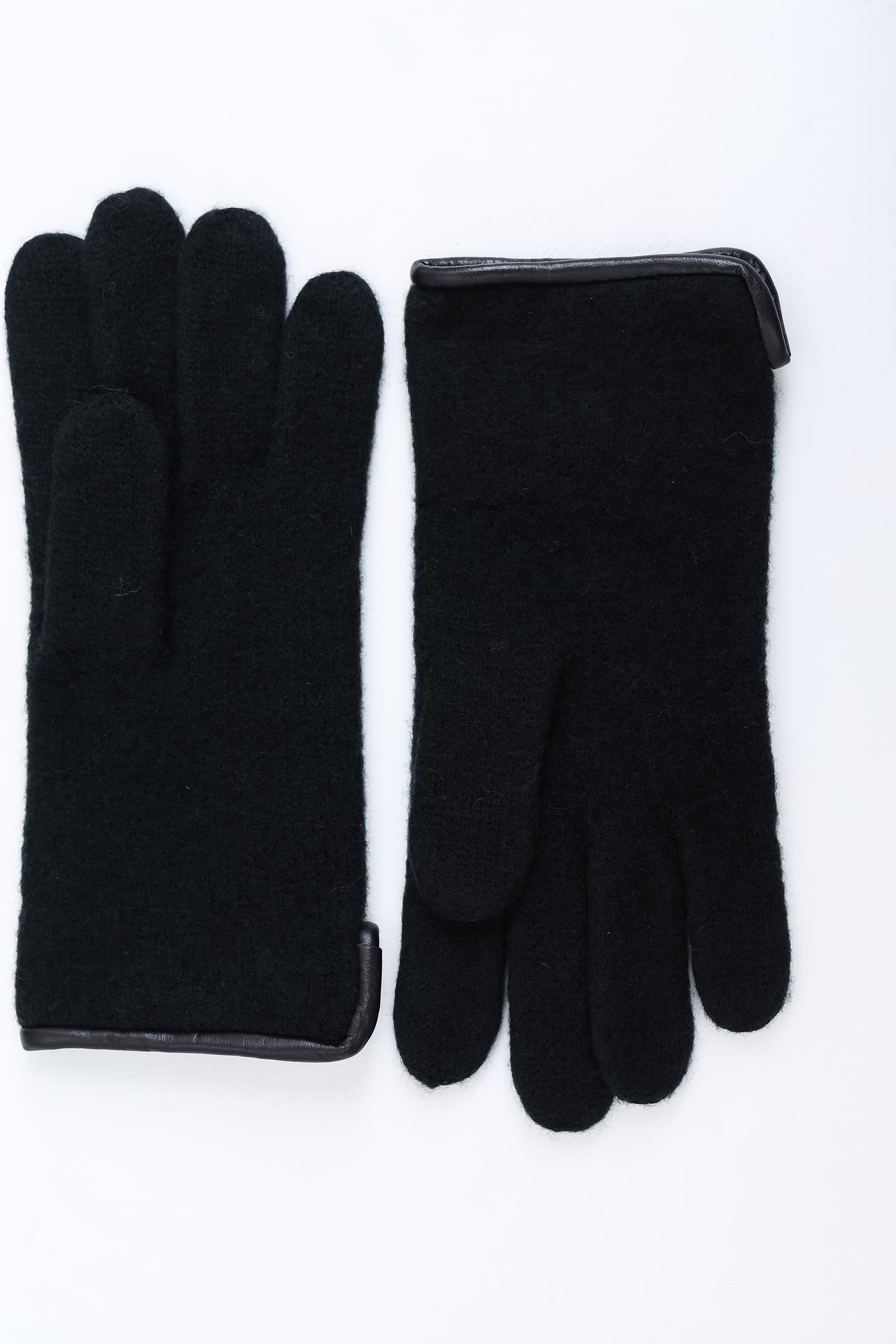 Перчатки Roeckl шерстяные черные с кожаной отделкой