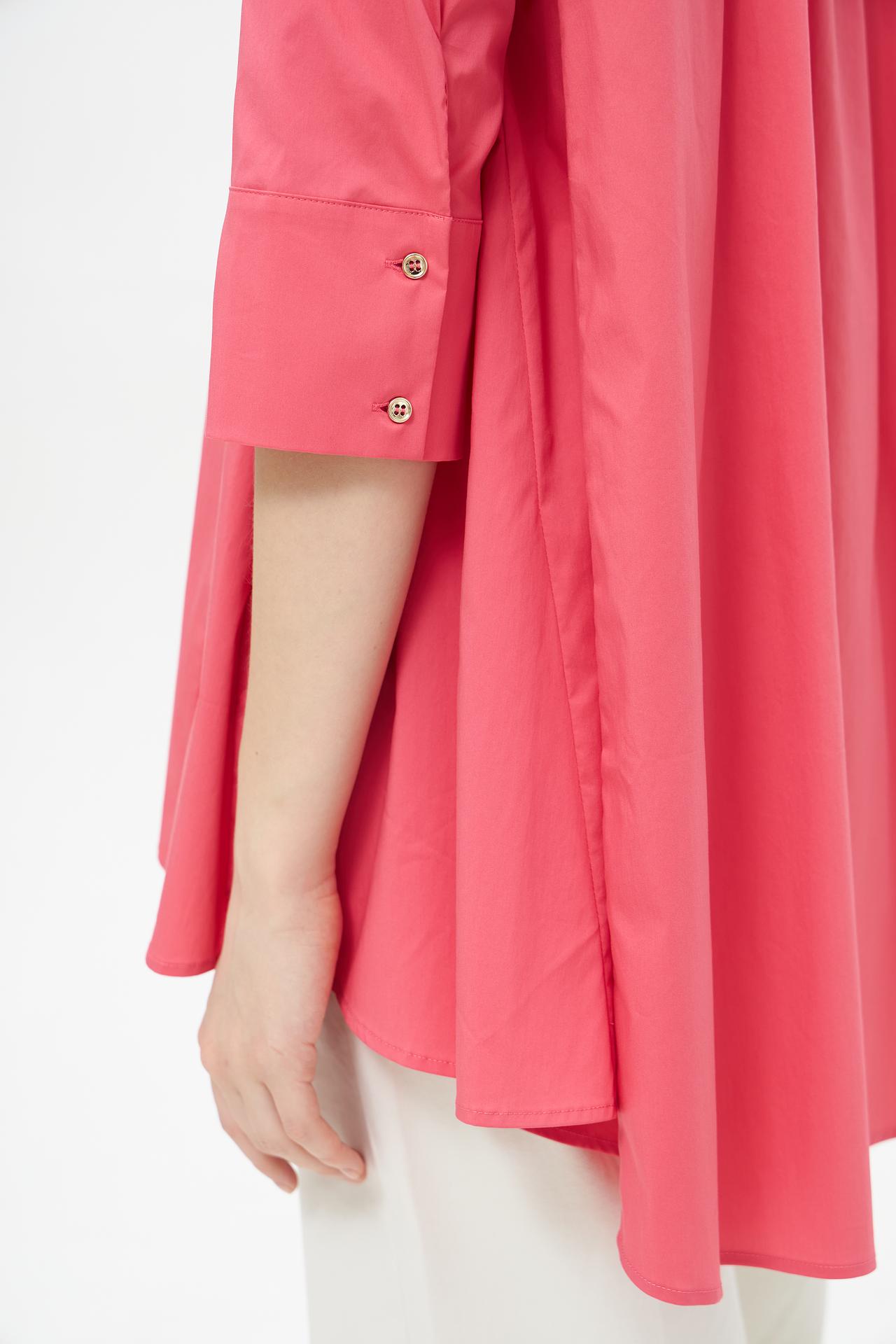 Изысканная блуза Catnoir в насыщенном розовом оттенке – идеальное дополнение вашего гардероба. Изготовленная из высококачественной смесовой ткани (74% хлопок, 3% спандекс, 23% нейлон), эта блуза сочетает в себе комфорт, практичность и элегантность. Блуза рубашечного кроя, застегивается на пуговицы, имеет рукав 3/4 и слегка удлиненную спинку. Эта стильная блузка прекрасно сочетается как с классическими брюками, так и с джинсами, позволяя создавать разнообразные образы.