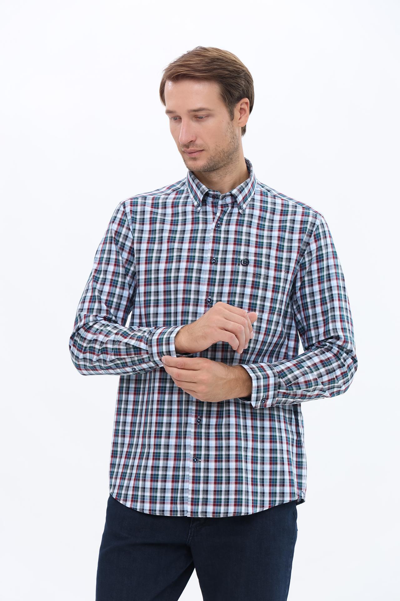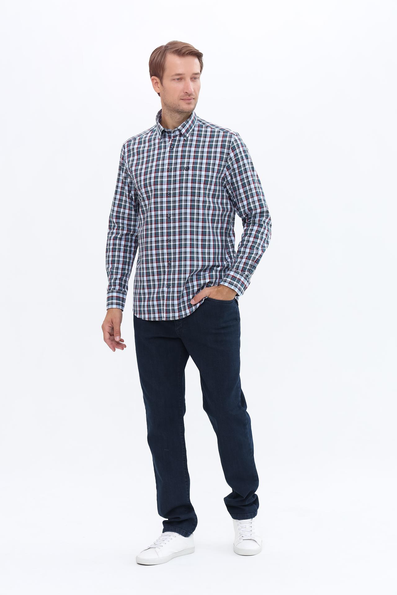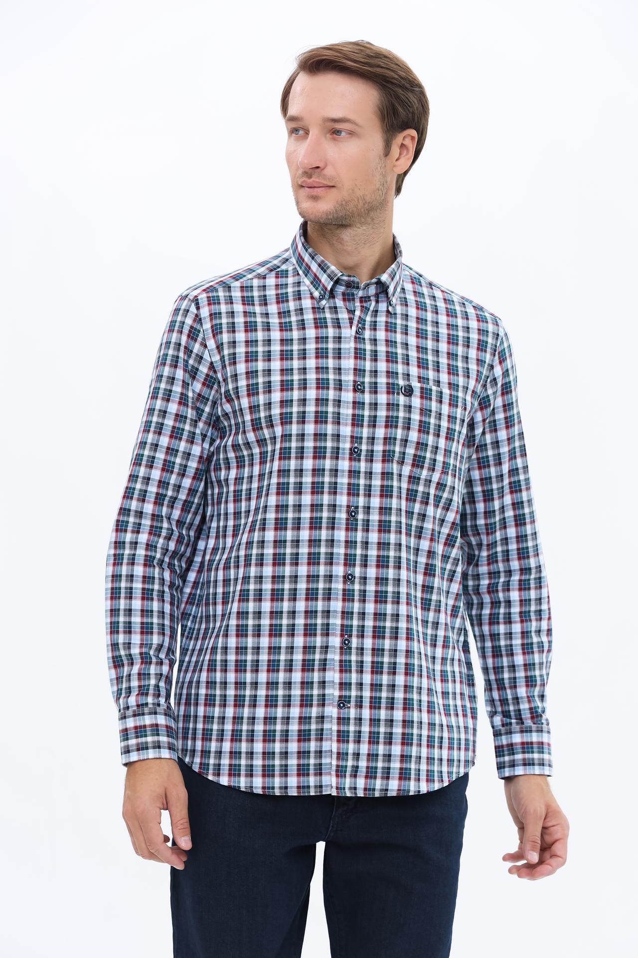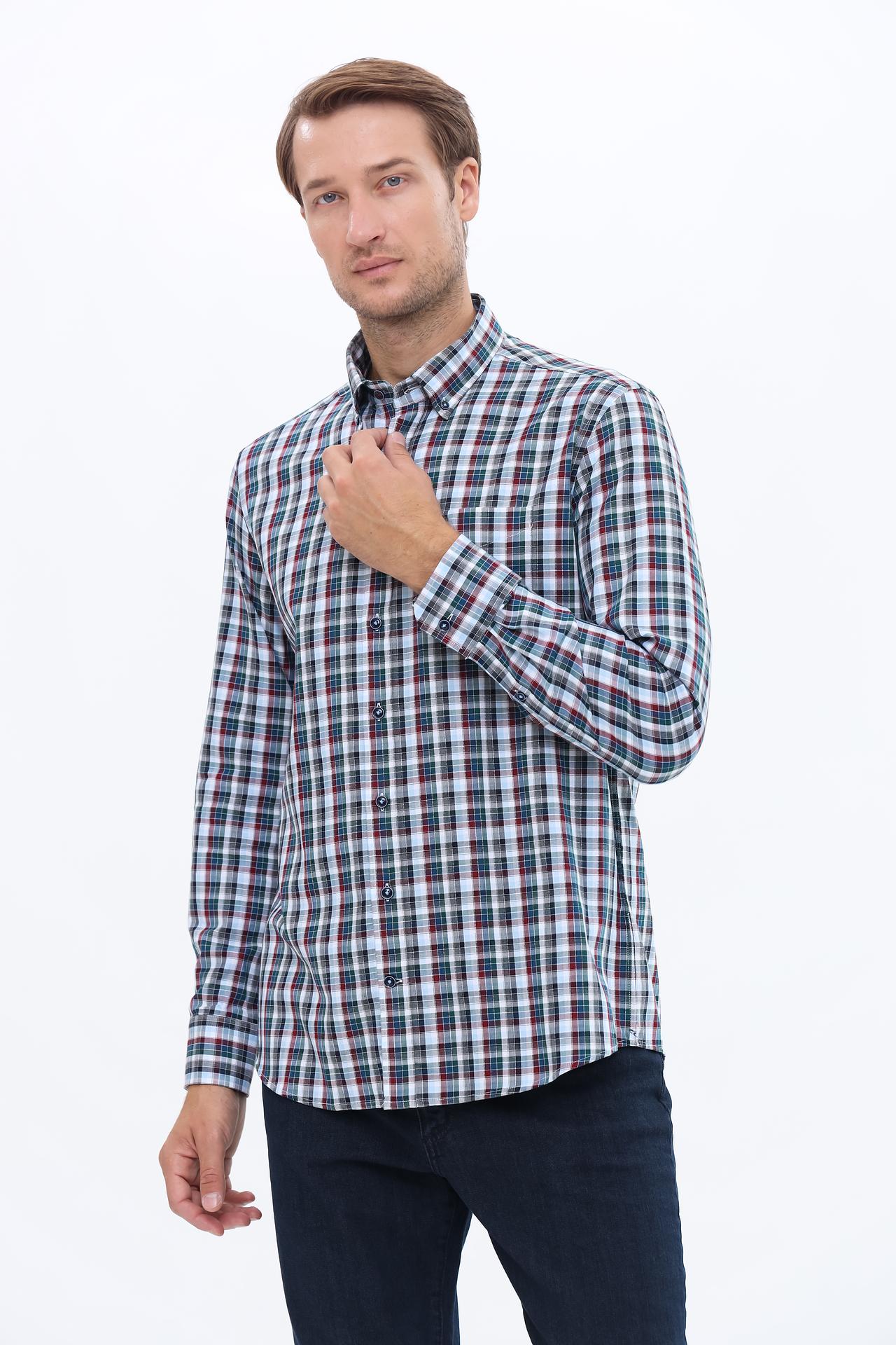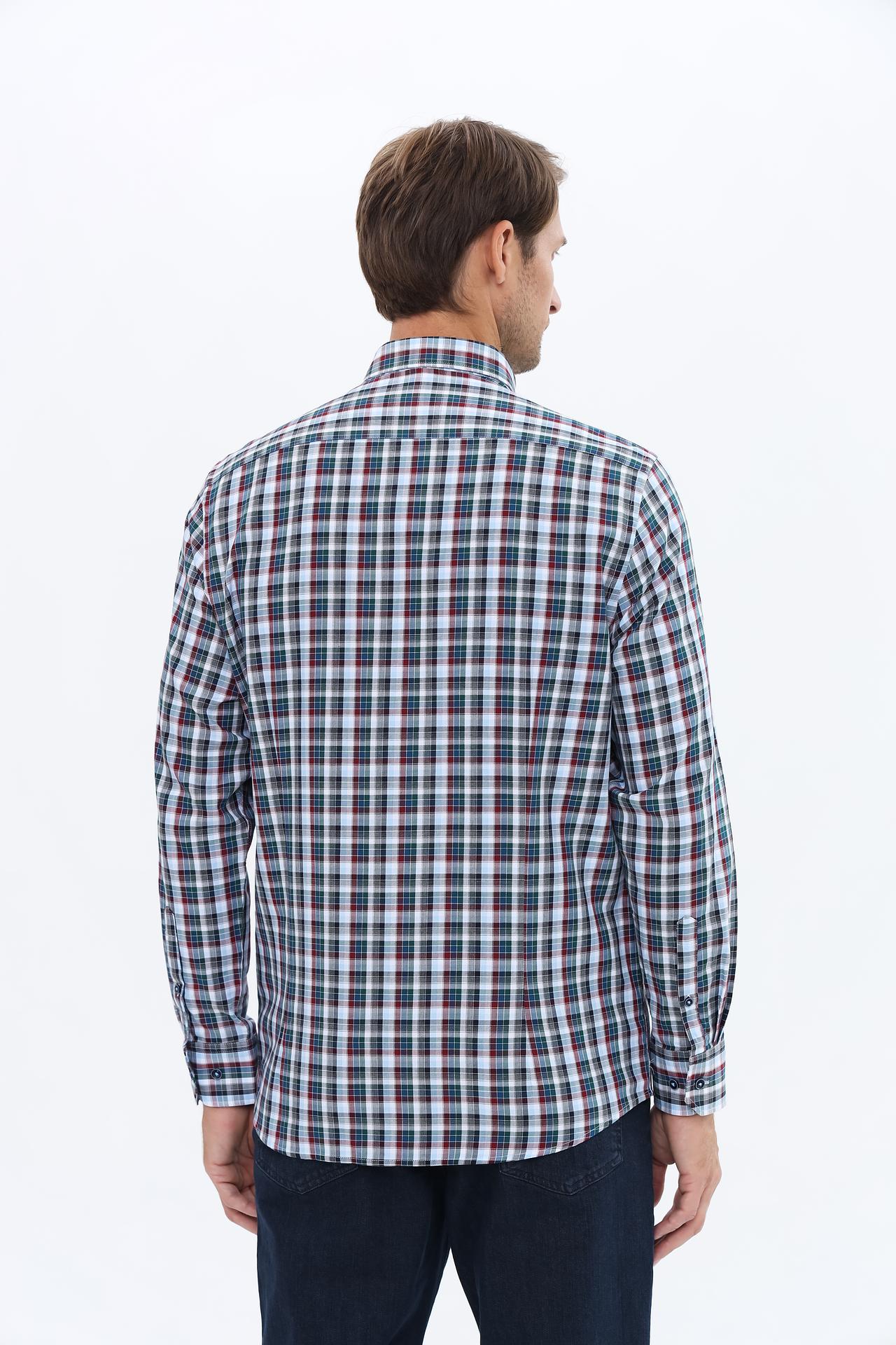 Рубашка выполнена в элегантной сине-зеленой клетчатой расцветке, которая добавит изюминку в любой образ. Прекрасно подходит под брюки, джинсы и другие элементы гардероба, создавая многогранный стиль.