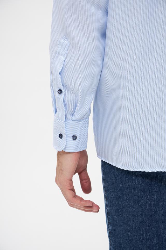 Эта рубашка от Casa Moda станет незаменимой частью вашего гардероба. Выполнена в нежном голубом цвете, она легко сочетается с различными брюками и джинсами, создавая как деловой, так и повседневный образ.