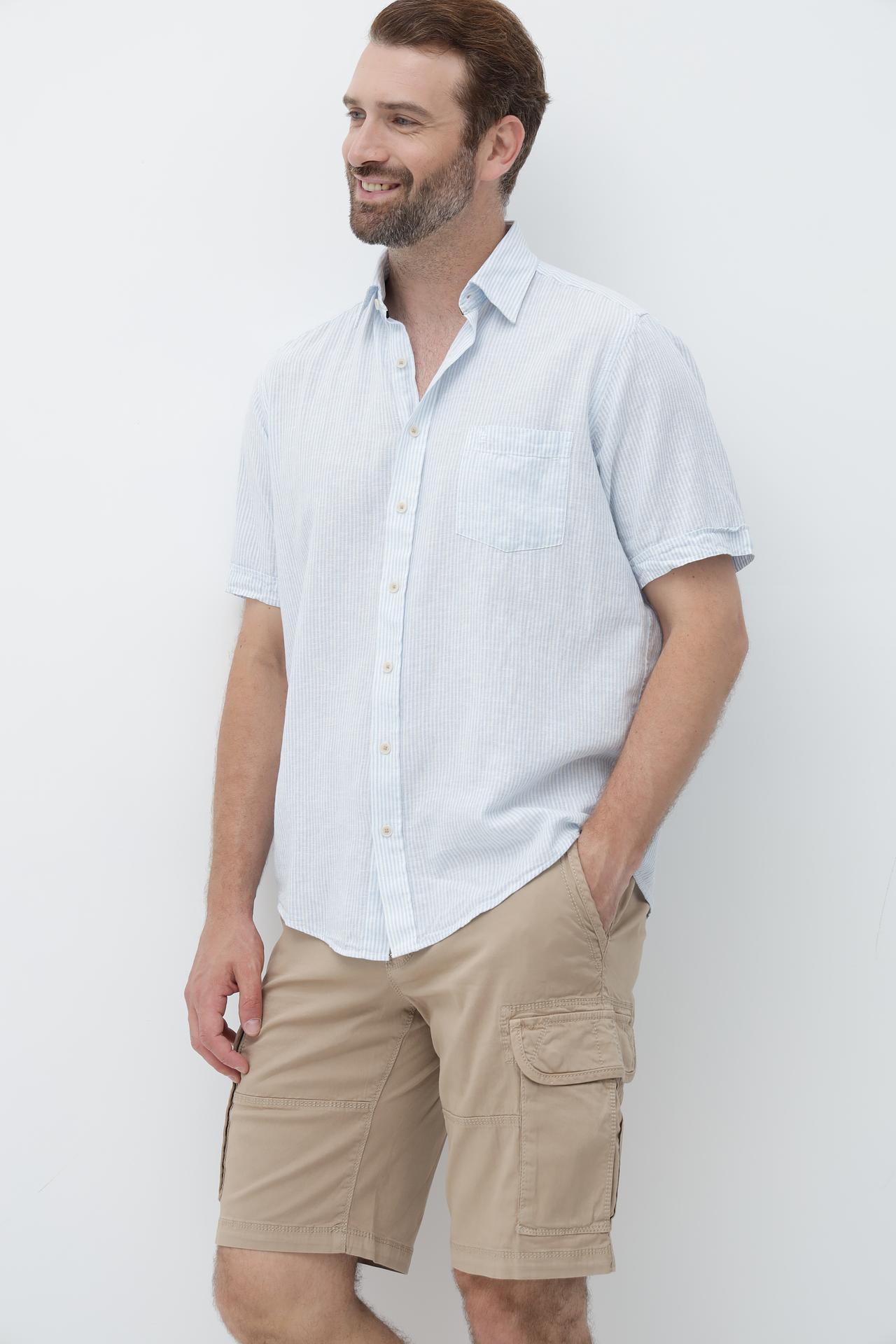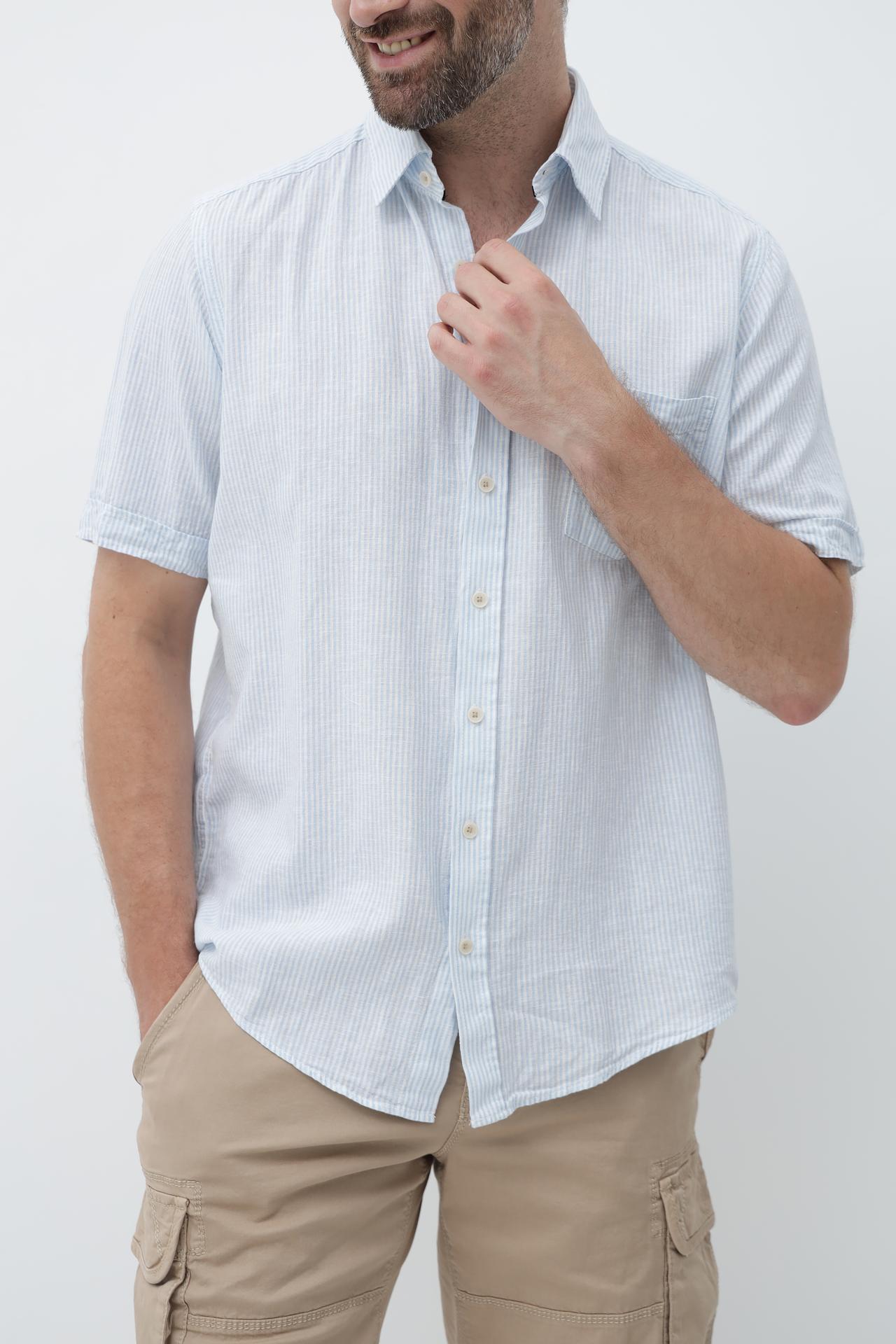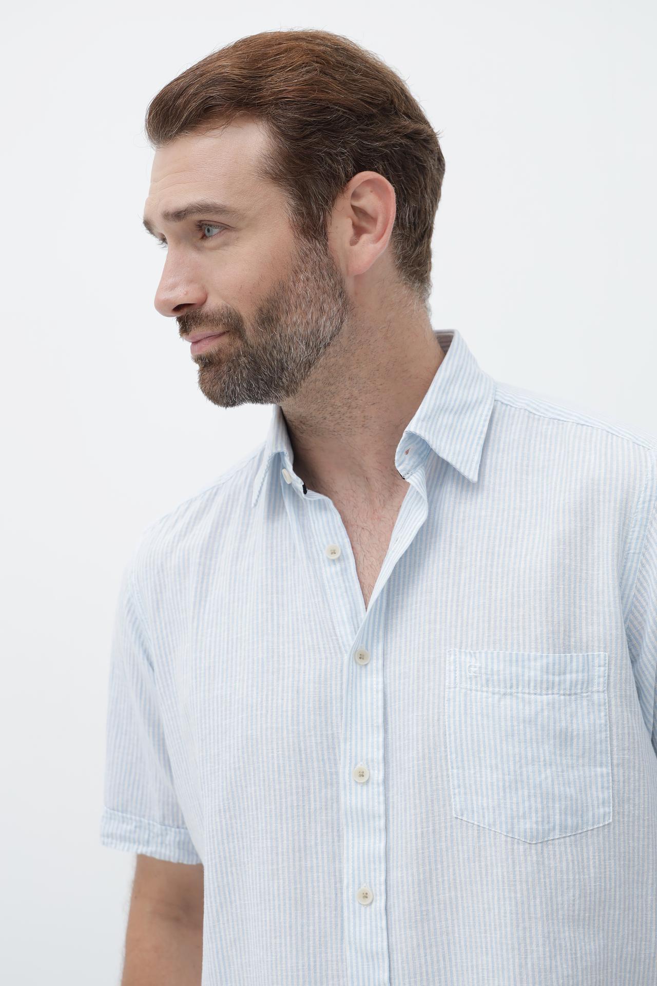Состав ткани: 45% хлопок, 55% лен. Такая комбинация обеспечивает отличную воздухопроницаемость, позволяя коже дышать даже в жаркую погоду. Лён придает рубашке лёгкость и приятную текстуру, а хлопок делает её мягкой и комфортной в носке. Рубашка отлично подойдет для повседневной носки и для особых случаев.