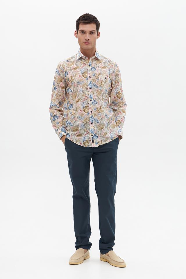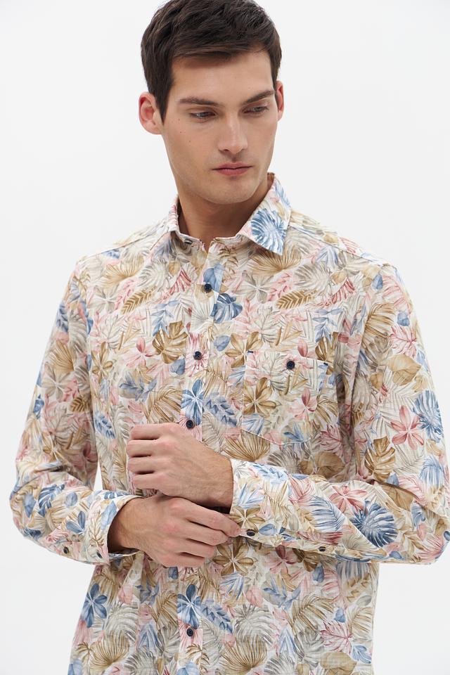 Мужская рубашка Casa Moda светло-бежевого цвета с ярким тропическим принтом станет отличным дополнением к летнему гардеробу. Изготовлена из 100% хлопка, обеспечивающего комфорт и воздухопроницаемость. Состав: хлопок 100%