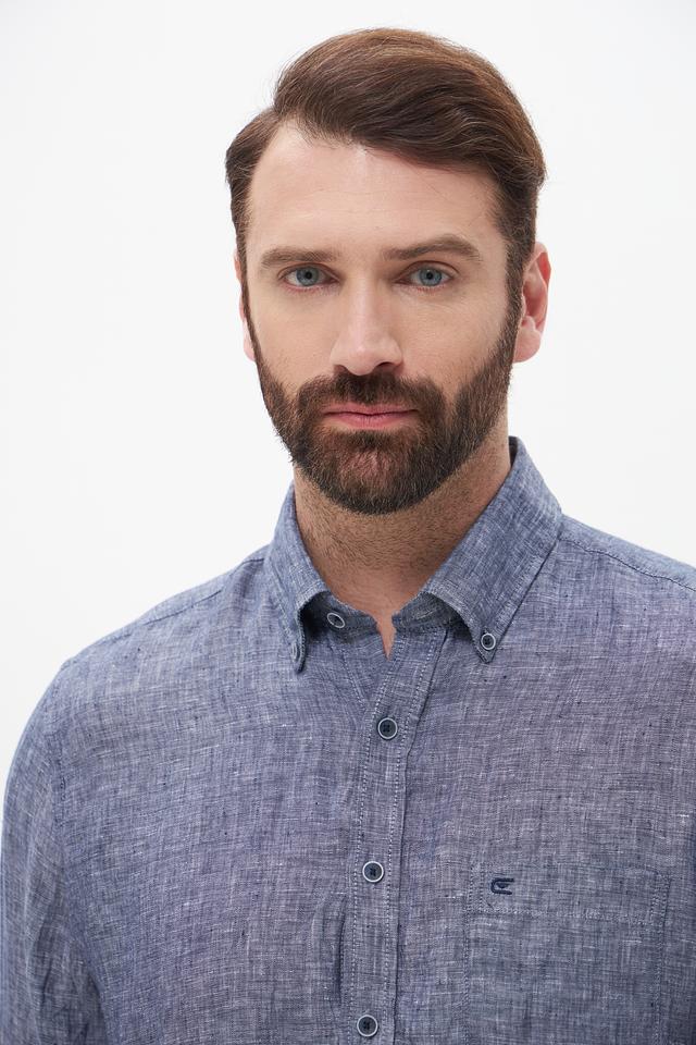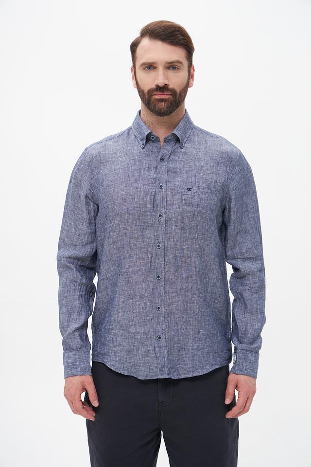 Мужская рубашка Casa Moda синего цвета с длинным рукавом выполнена из 100% льна. Лёгкая и дышащая модель идеально подойдёт для создания повседневных образов в тёплую погоду. Состав: лен 100%