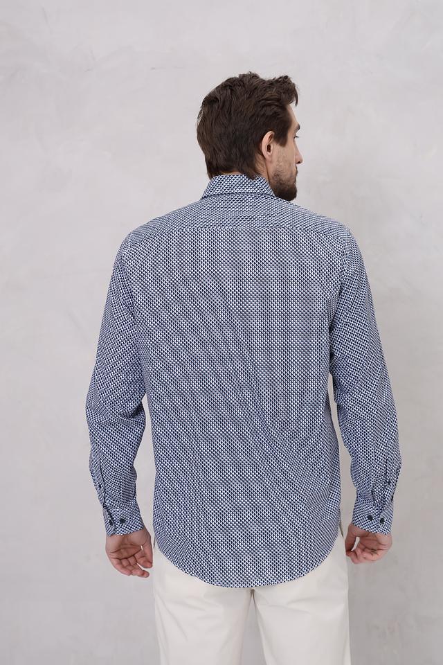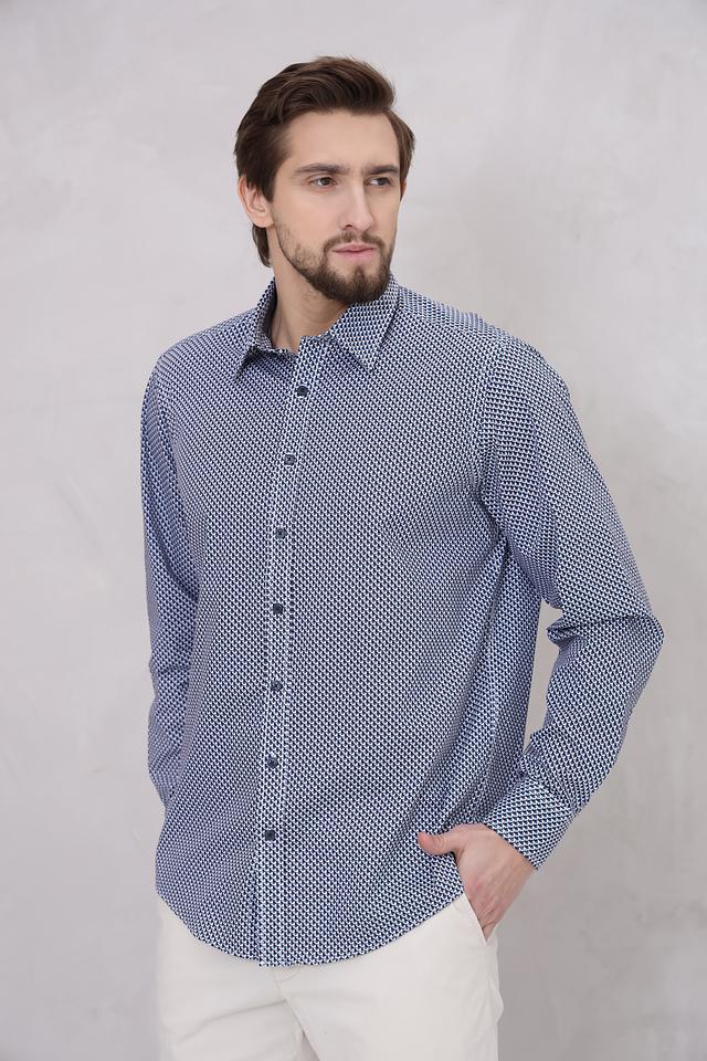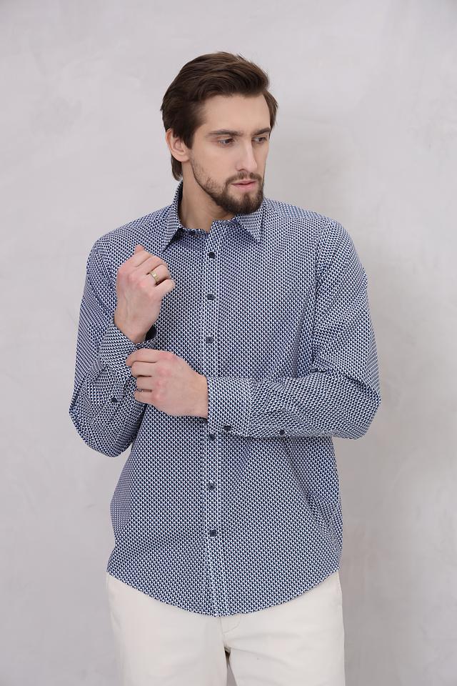 Мужская рубашка Casa Moda синего цвета с геометрическим принтом – стильное и комфортное решение для повседневного образа. Изготовлена из 100% хлопка, обеспечивающего приятные ощущения и воздухопроницаемость. Состав: хлопок 100%