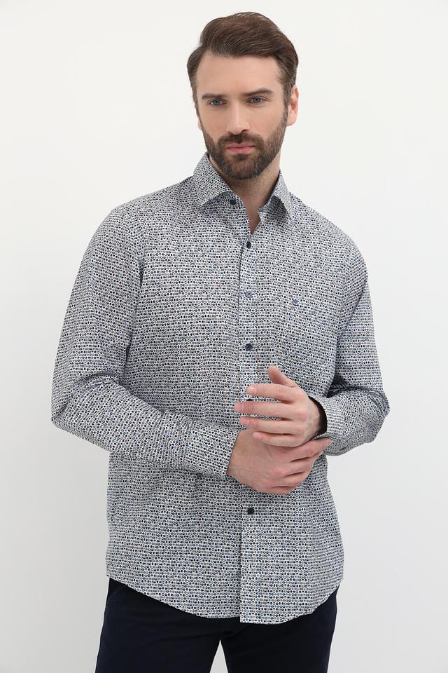 Мужская рубашка Casa Moda светло-серого цвета с оригинальным принтом. Классический крой и длинные рукава делают эту рубашку универсальным элементом гардероба. Изготовлена из 100% хлопка, обеспечивающего комфорт в носке. Состав: хлопок 100%