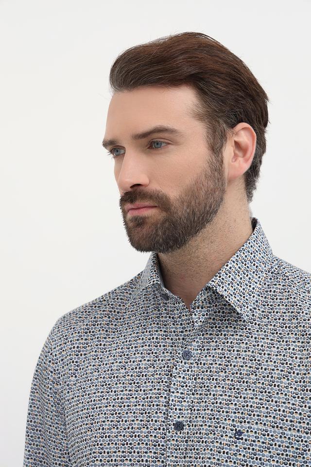Эта стильная рубашка от Casa Moda станет отличным дополнением к вашему гардеробу. Выполнена в светло-сером цвете с интересным геометрическим принтом, который придаёт ей индивидуальность.