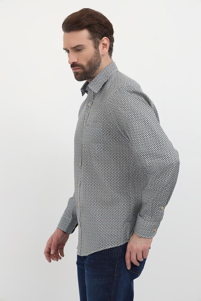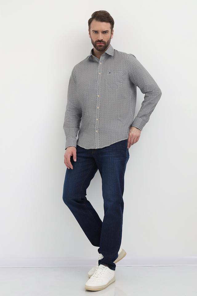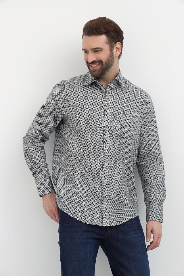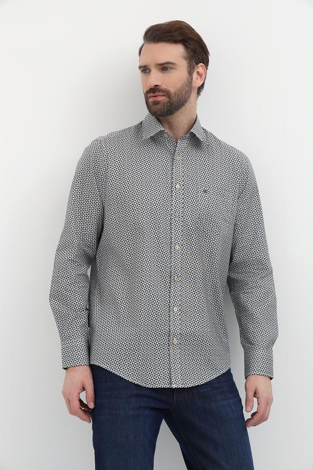 Мужская рубашка Casa Moda синего цвета с мелким геометрическим принтом. Классический крой и длинный рукав делают эту рубашку универсальным элементом гардероба. Изготовлена из 100% хлопка, обеспечивающего комфорт в носке. Состав: хлопок 100%