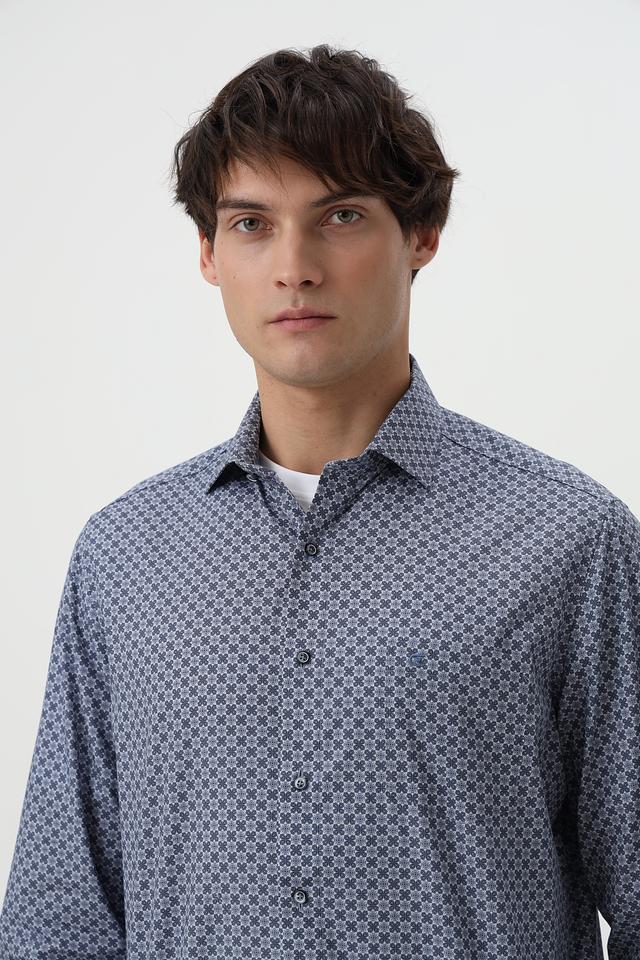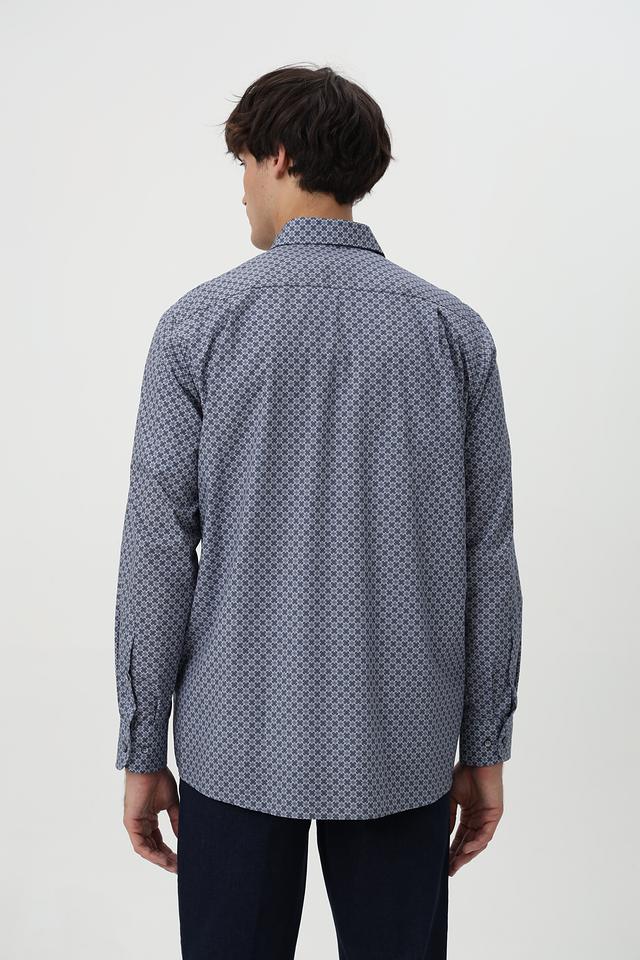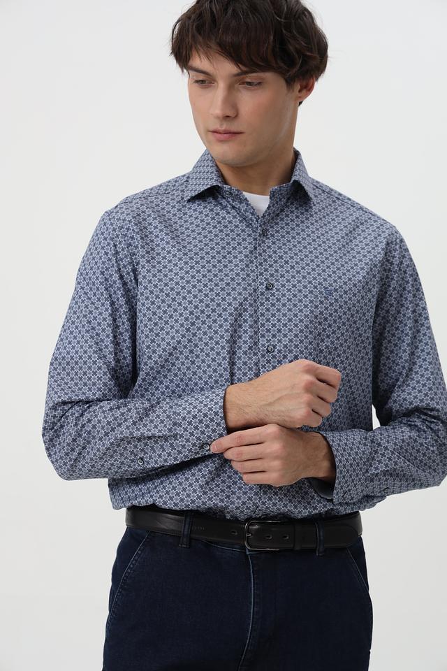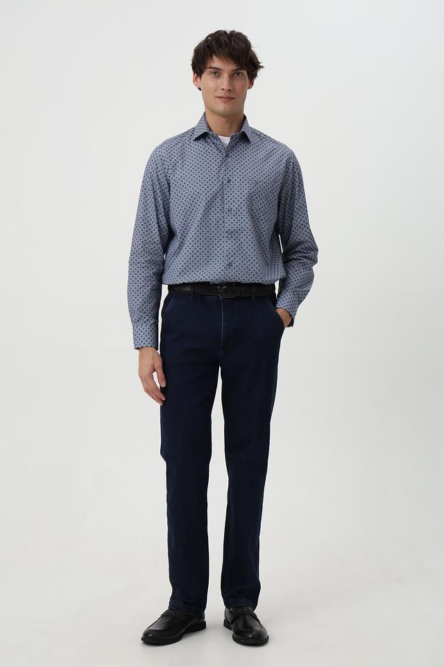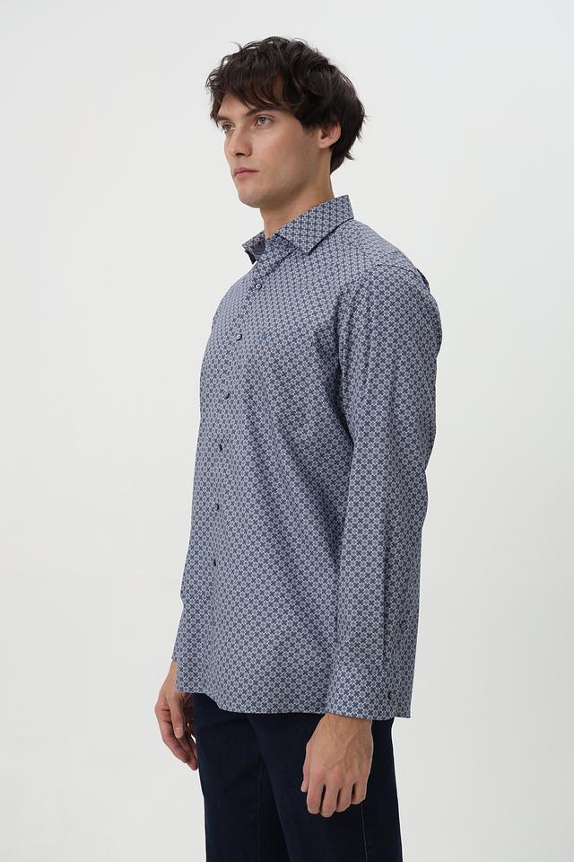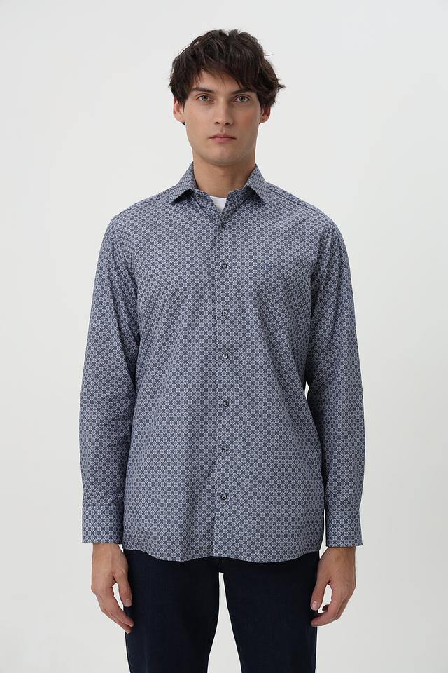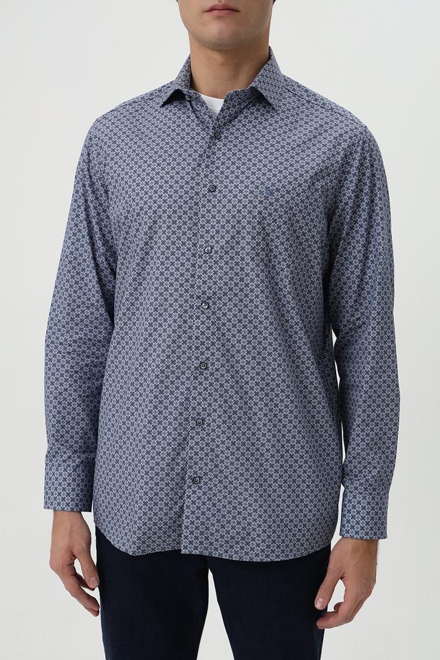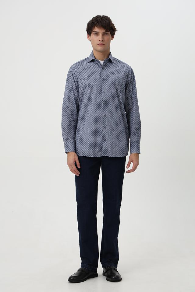 Мужская рубашка Casa Moda синего цвета с оригинальным геометрическим принтом. Изготовлена из 100% хлопка, обеспечивающего комфорт и воздухопроницаемость. Состав: хлопок 100%