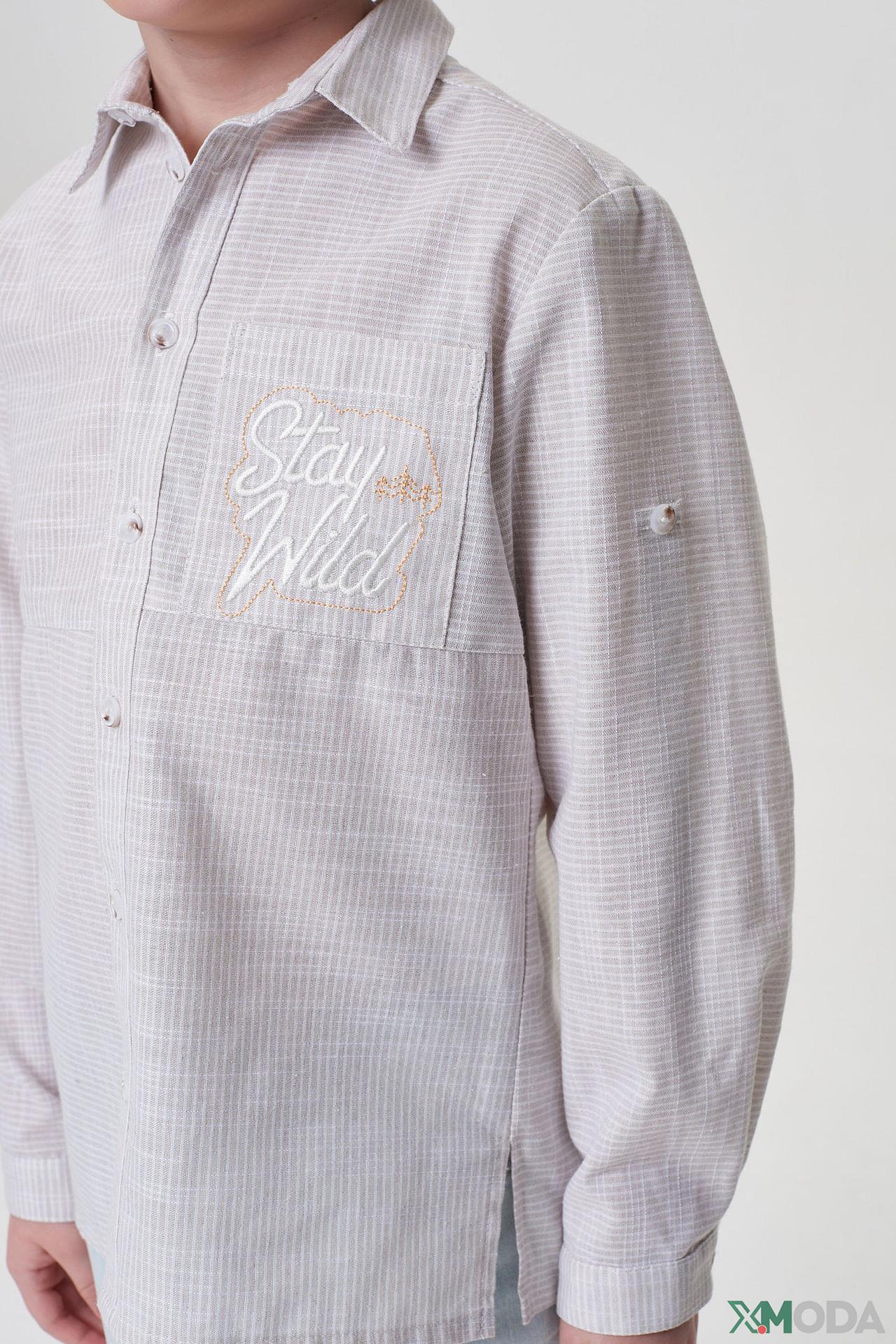 - Продуманный дизайн: Нагрудный карман украшен оригинальной вышивкой "Stay Wild". Специальные хлястики позволяют аккуратно зафиксировать подвернутые рукава, адаптируя рубашку к любой погоде или активности.