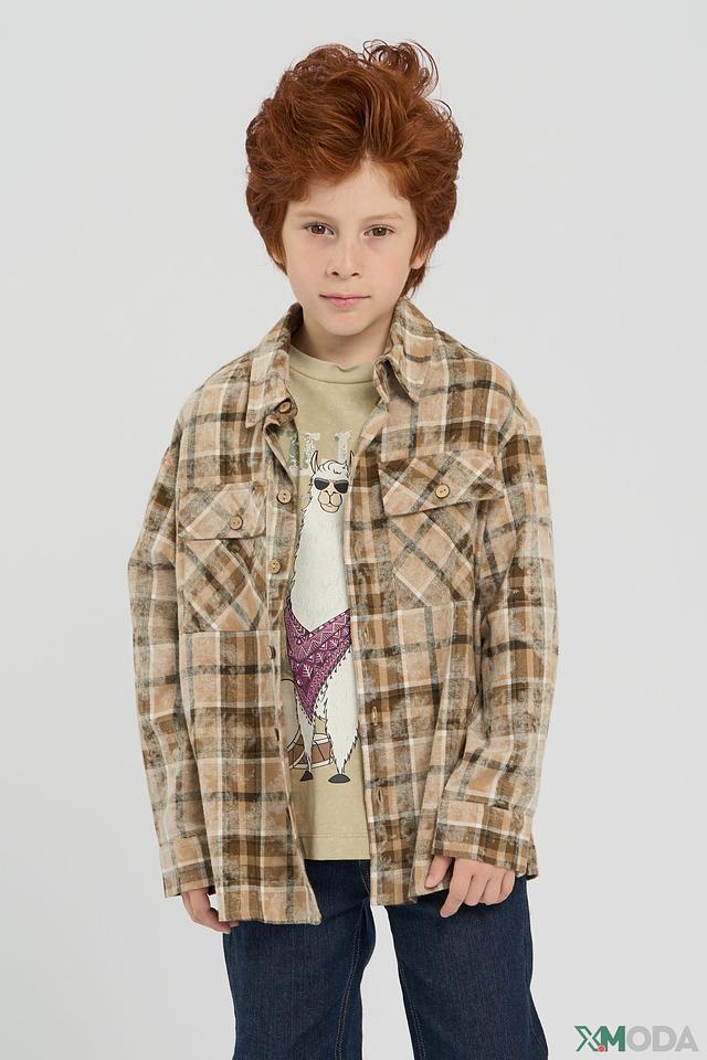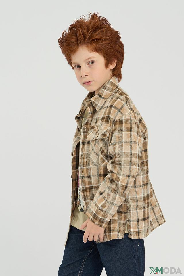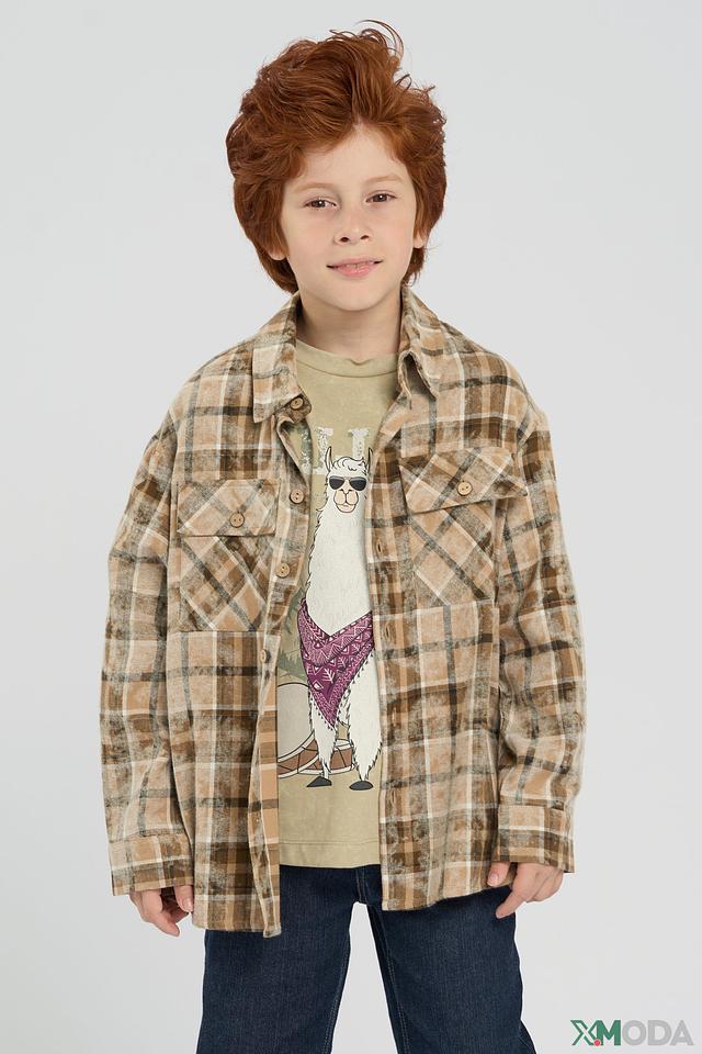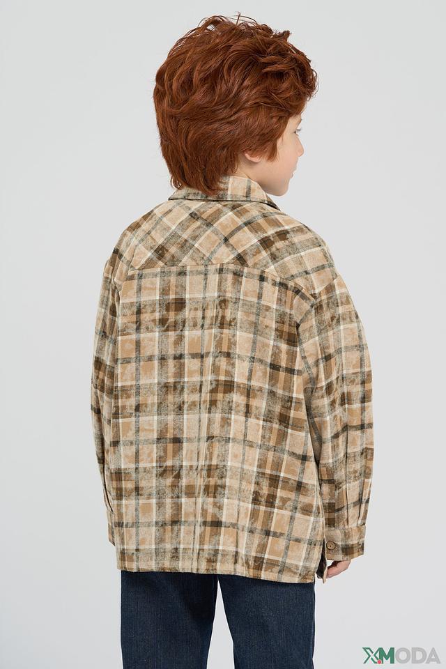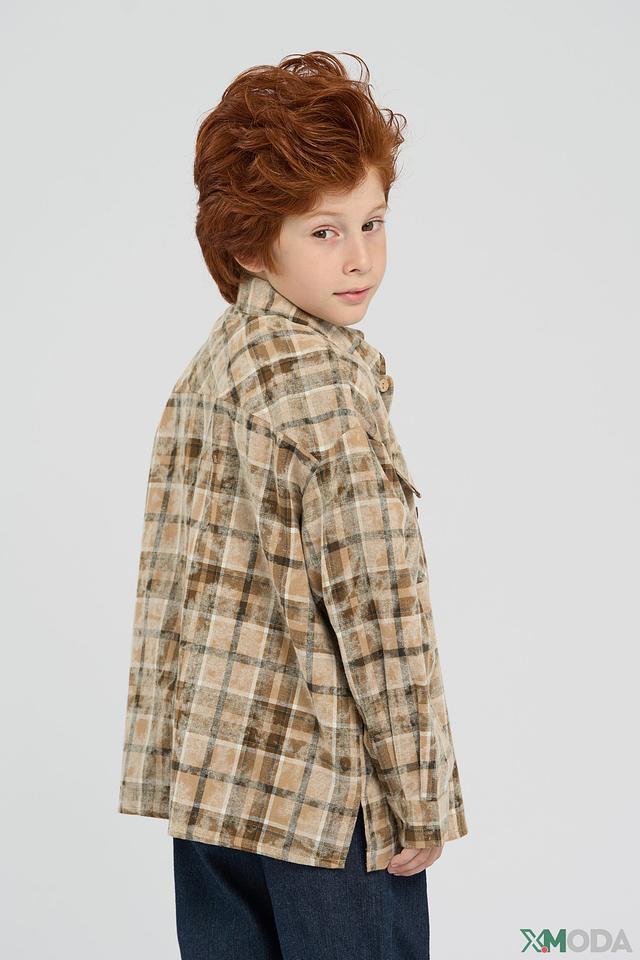 Рубашка Choupette детская в клетку бежево-коричневая, с карманами