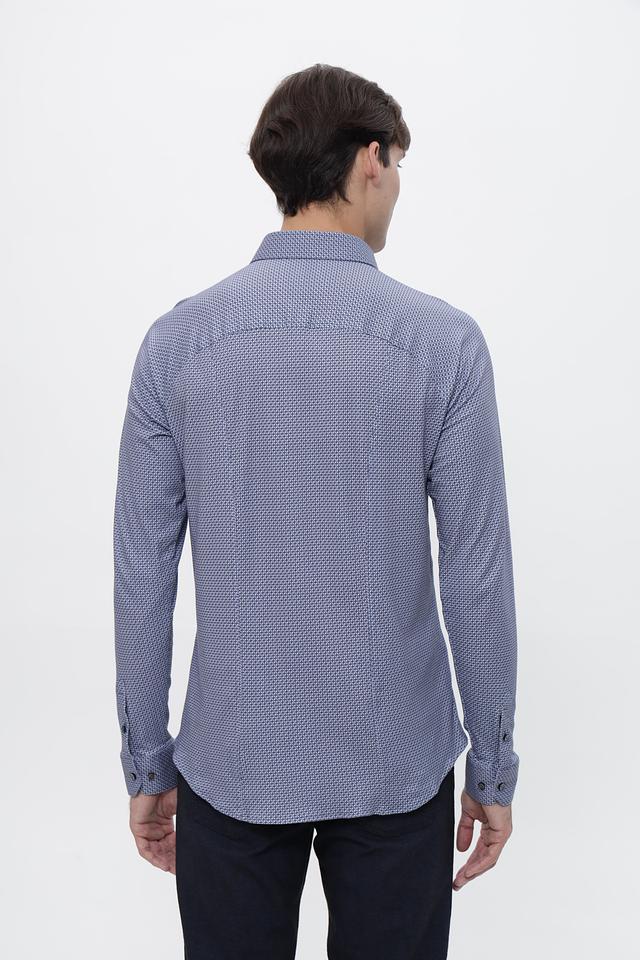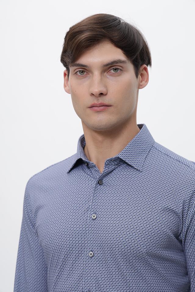 Мужская рубашка Desoto голубого цвета с мелким геометрическим принтом. Изготовлена из 100% хлопка, обеспечивающего комфорт и воздухопроницаемость. Состав: хлопок 100%