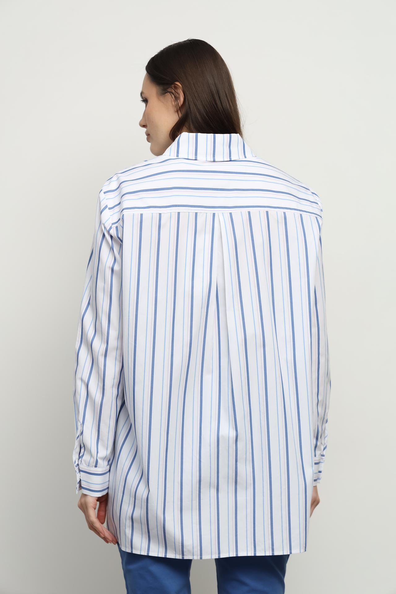 Классическая рубашка-туника Gerry Weber из 100% хлопка — идеальный выбор для создания стильных и комфортных образов. Эта модель с длинным рукавом и отложным воротником выполнена в актуальной белой цветовой гамме с контрастными синими и голубыми вертикальными полосками, что визуально вытягивает силуэт. Благодаря натуральному составу, женская рубашка обеспечивает исключительный комфорт и воздухопроницаемость в течение всего дня.