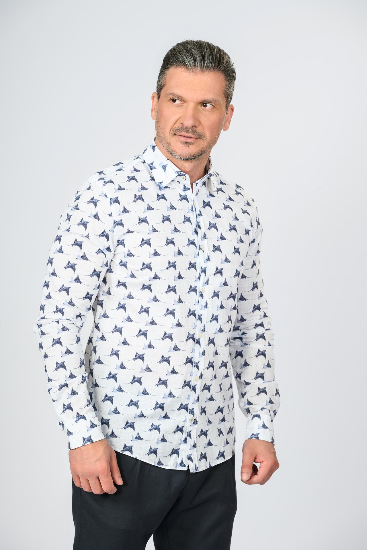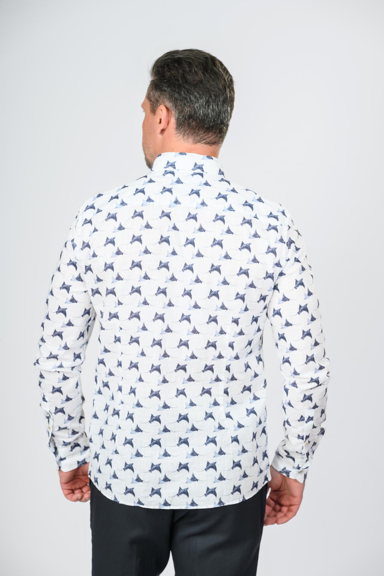 - Оригинальный дизайн. Уникальный принт в виде морских скатов на белом фоне придает рубашке эксклюзивный и запоминающийся вид. Это отличный способ выразить свой стиль и выделиться из толпы.