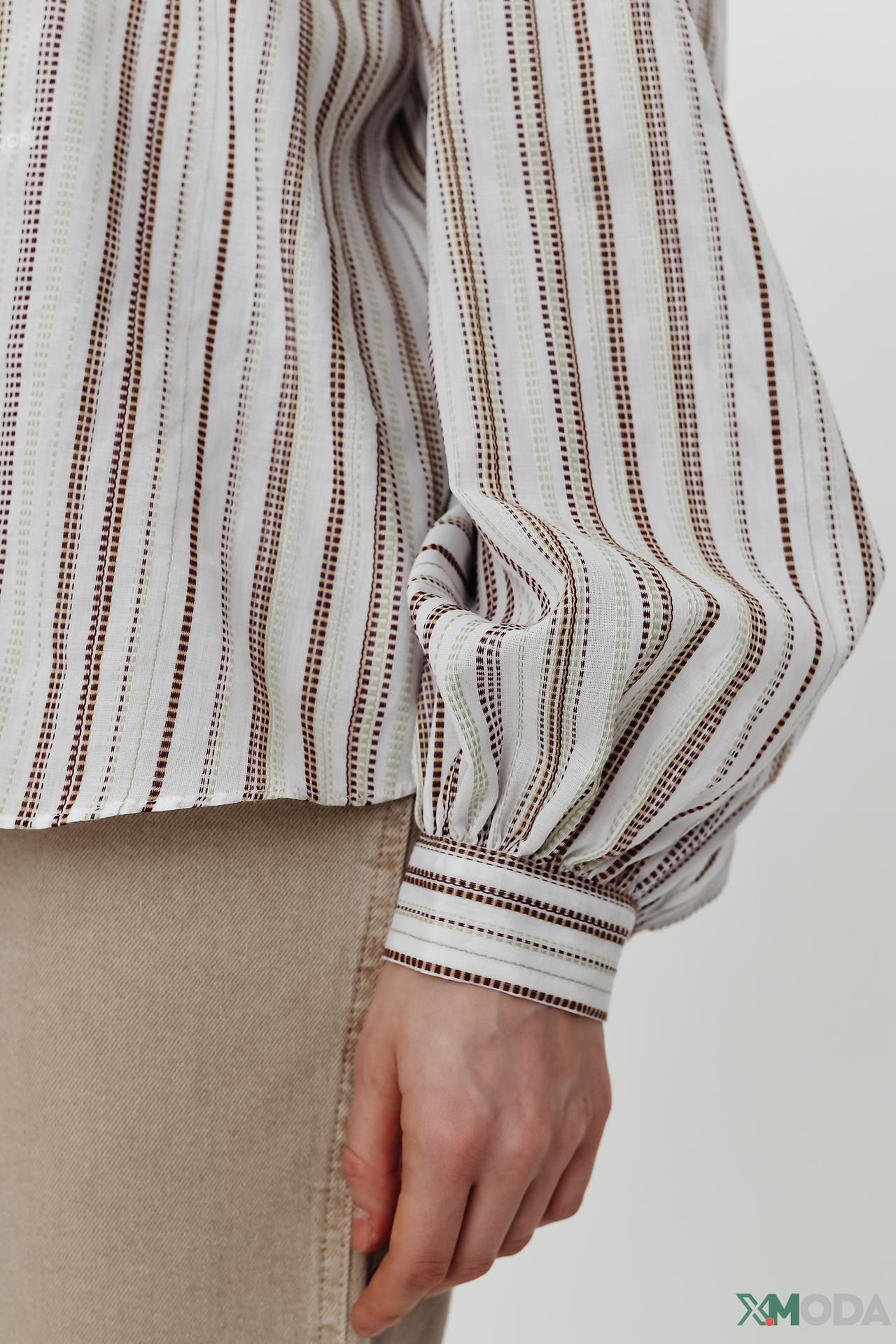 - Объемные рукава с манжетами. Актуальный фасон с пышными рукавами, собранными на манжетах, придает блузке современный и женственный силуэт. Данный элемент добавляет изысканности и подчеркивает индивидуальность образа.
