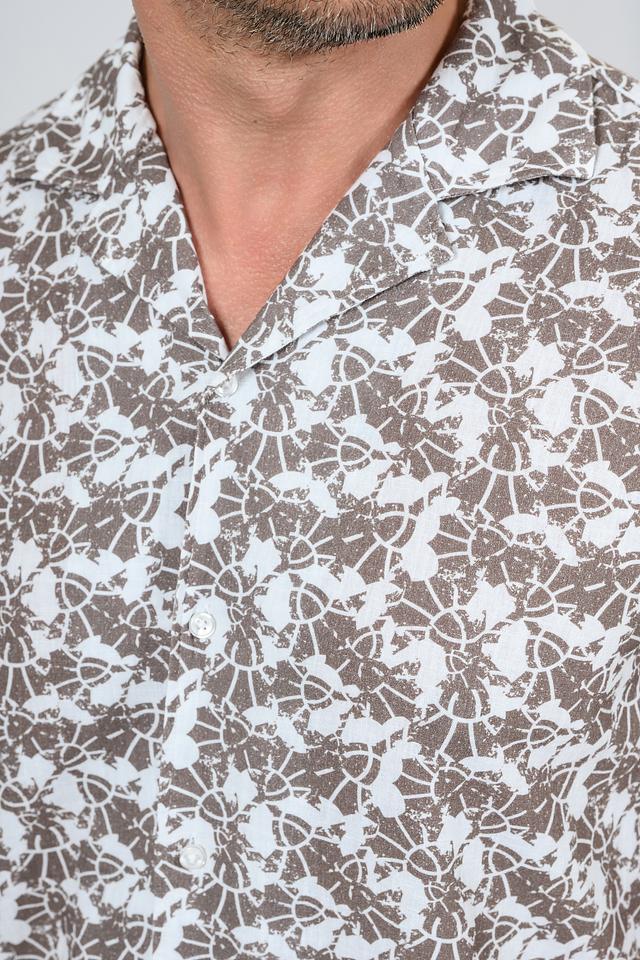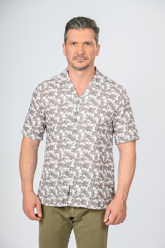 Мужская рубашка Joop! бежевого цвета с оригинальным цветочным принтом. Изготовлена из натурального хлопка с добавлением льна, что обеспечивает комфорт и воздухопроницаемость в жаркую погоду. Состав: хлопок 70%, лен 30%