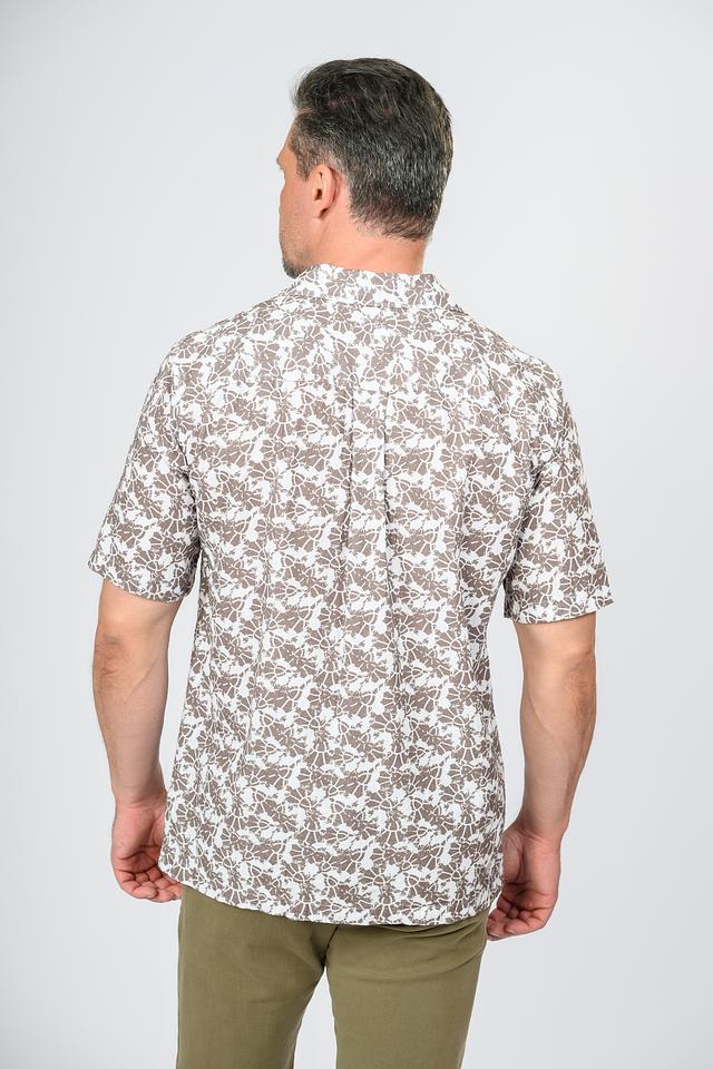 Рубашка имеет классический крой с короткими рукавами и воротником без воротника, что делает ее идеальным выбором для повседневной носки в теплое время года. Изготовлена из высококачественного хлопка с добавлением льна (70% хлопок, 30% лен), что обеспечивает мягкость, комфорт и хорошую воздухопроницаемость.