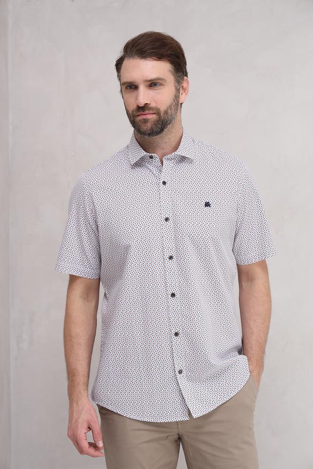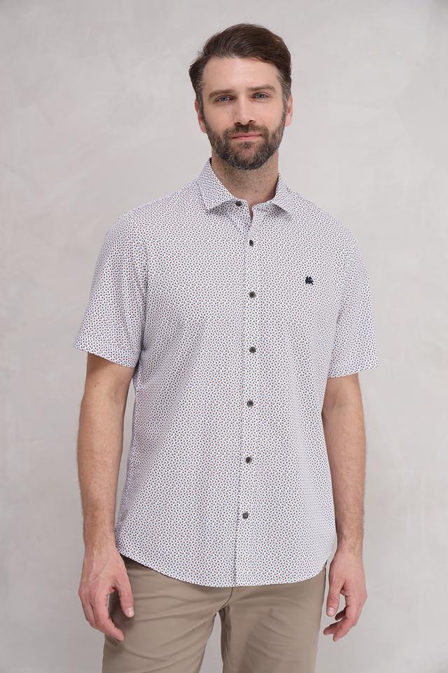 Мужская рубашка Lerros с коротким рукавом белого цвета с мелким тёмно-синим принтом. Изготовлена из 100% хлопка, обеспечивающего комфорт и воздухопроницаемость. Состав: хлопок 100%