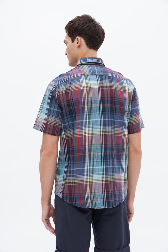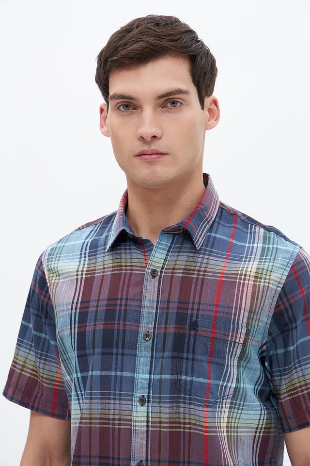Мужская рубашка Lerros с коротким рукавом выполнена в клетку. Модель с классическим кроем и застежкой на пуговицы, изготовлена из хлопка с добавлением льна. Состав: хлопок 71%, лен 29%