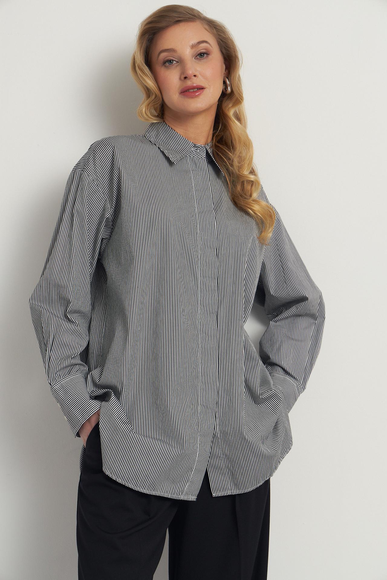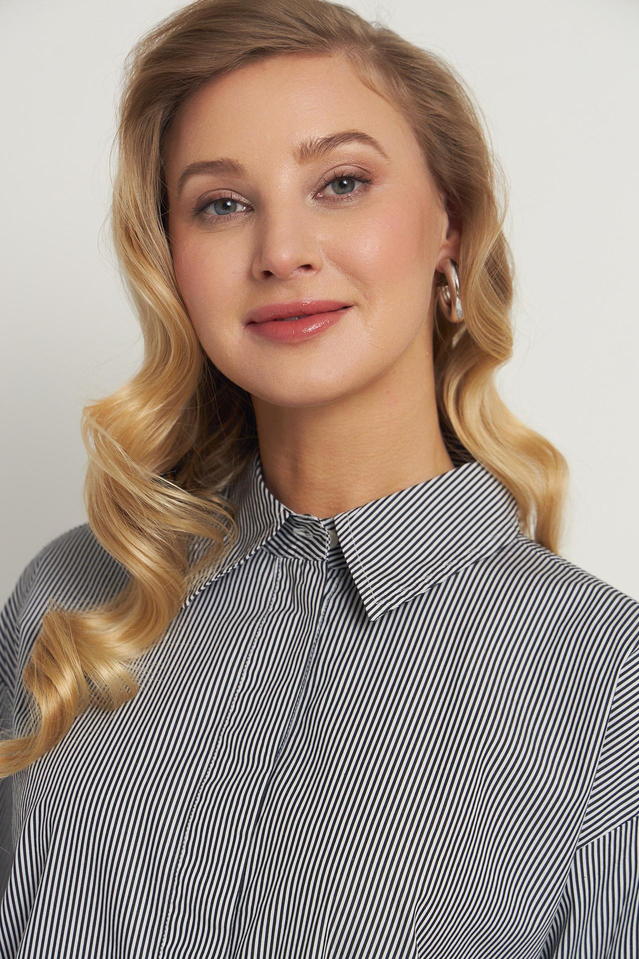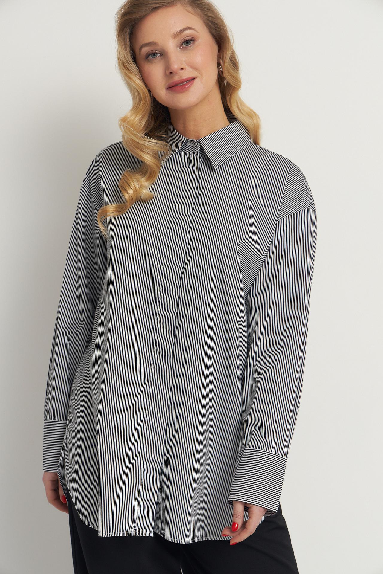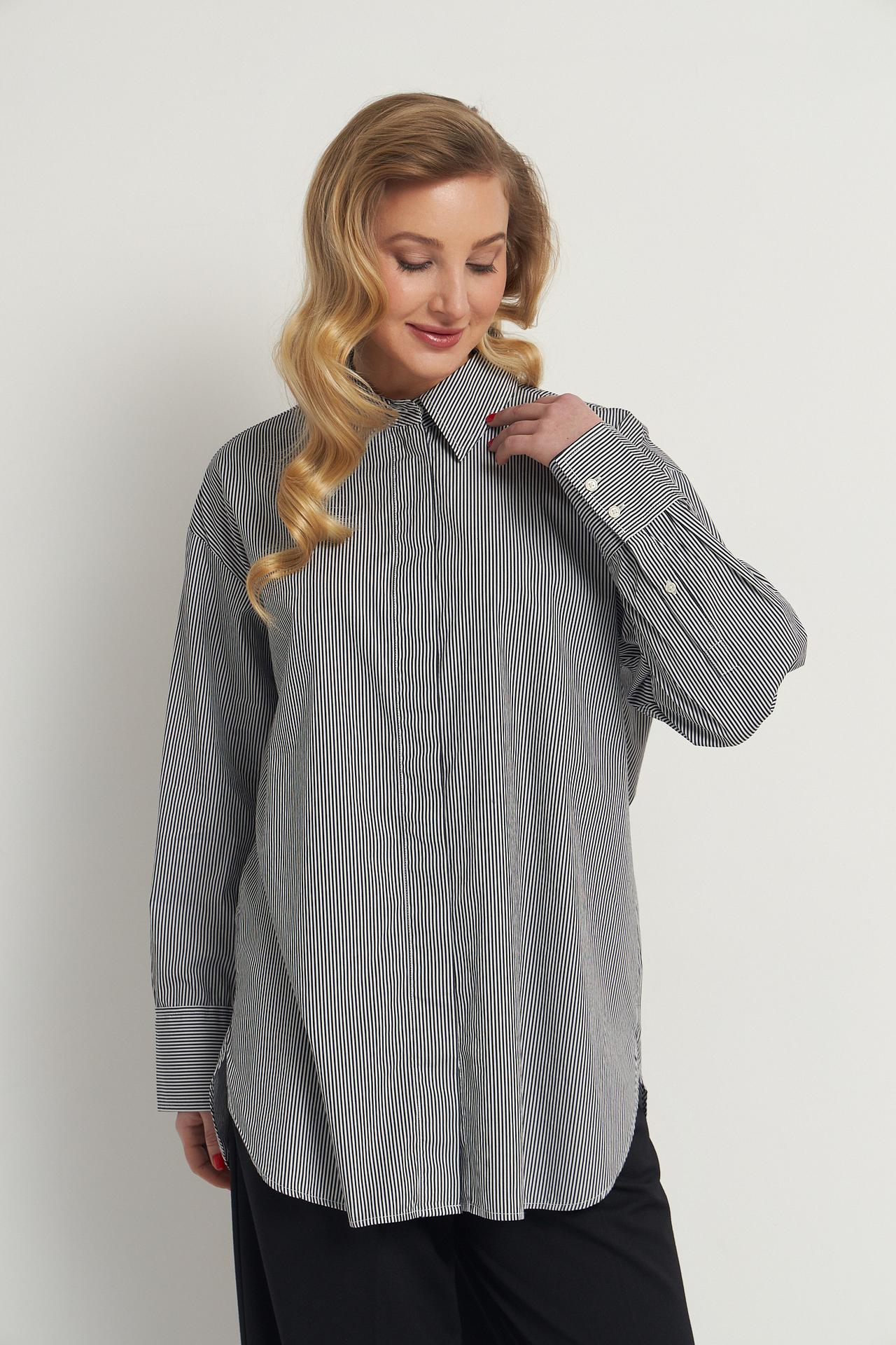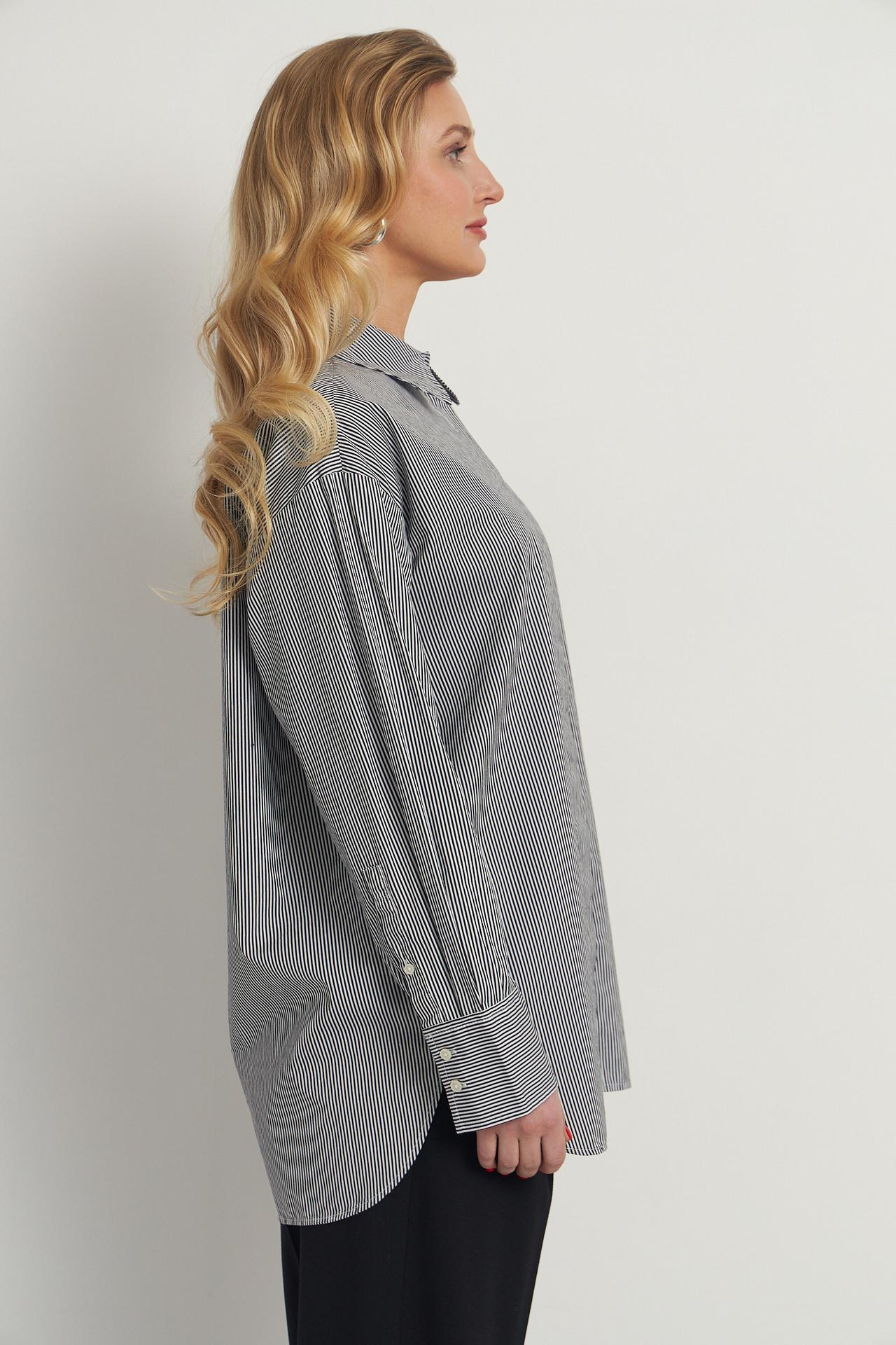 Классическая рубашка Marc O Polo с длинным рукавом выполнена из 100% хлопка, что обеспечивает исключительный комфорт и воздухопроницаемость. Модель в чёрно-белую полоску с прямым свободным кроем и спущенной линией плеча идеально вписывается в современный гардероб, предлагая универсальное решение для создания стильных повседневных и деловых образов. Это незаменимый элемент женской одежды, который дарит ощущение легкости и свободы.