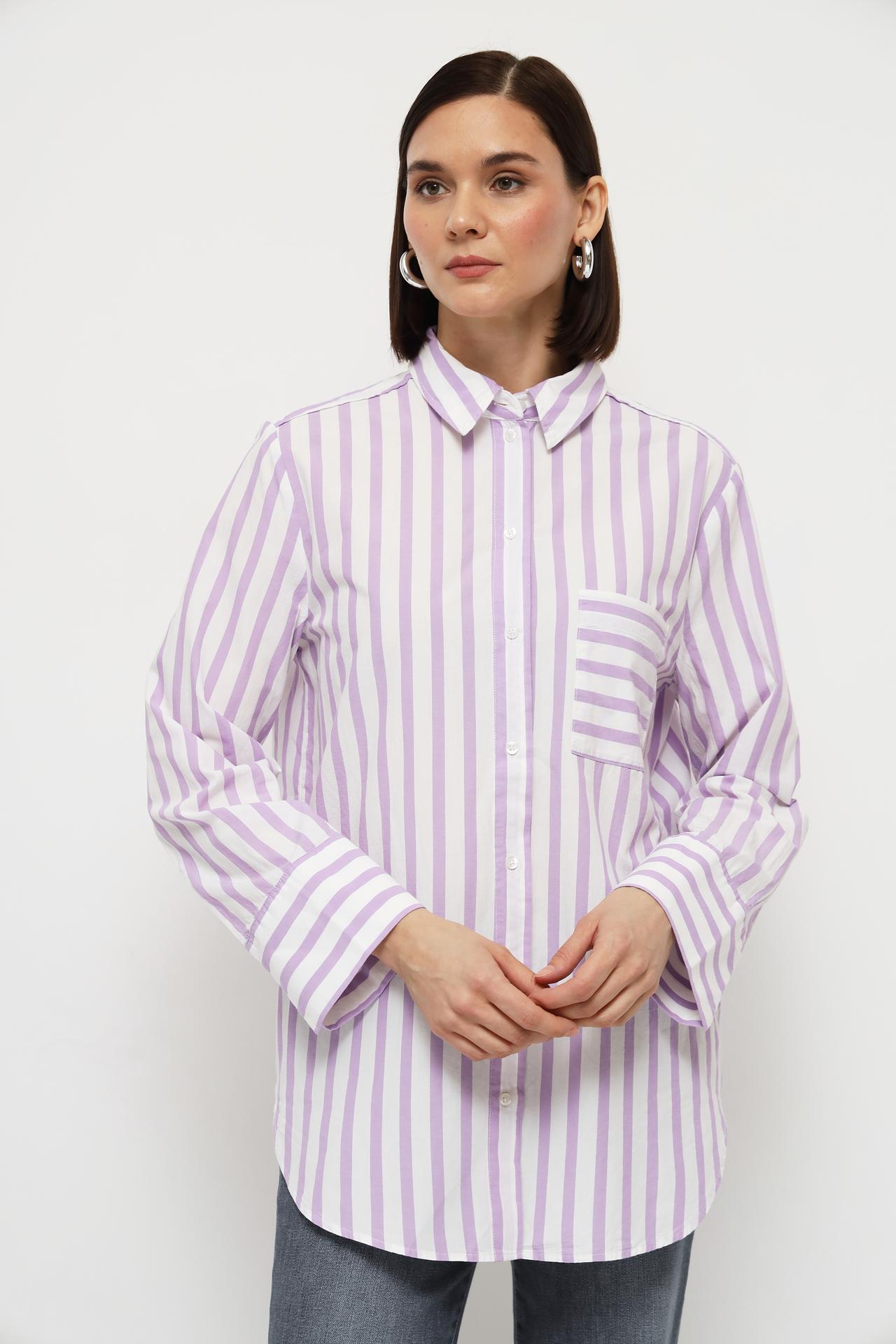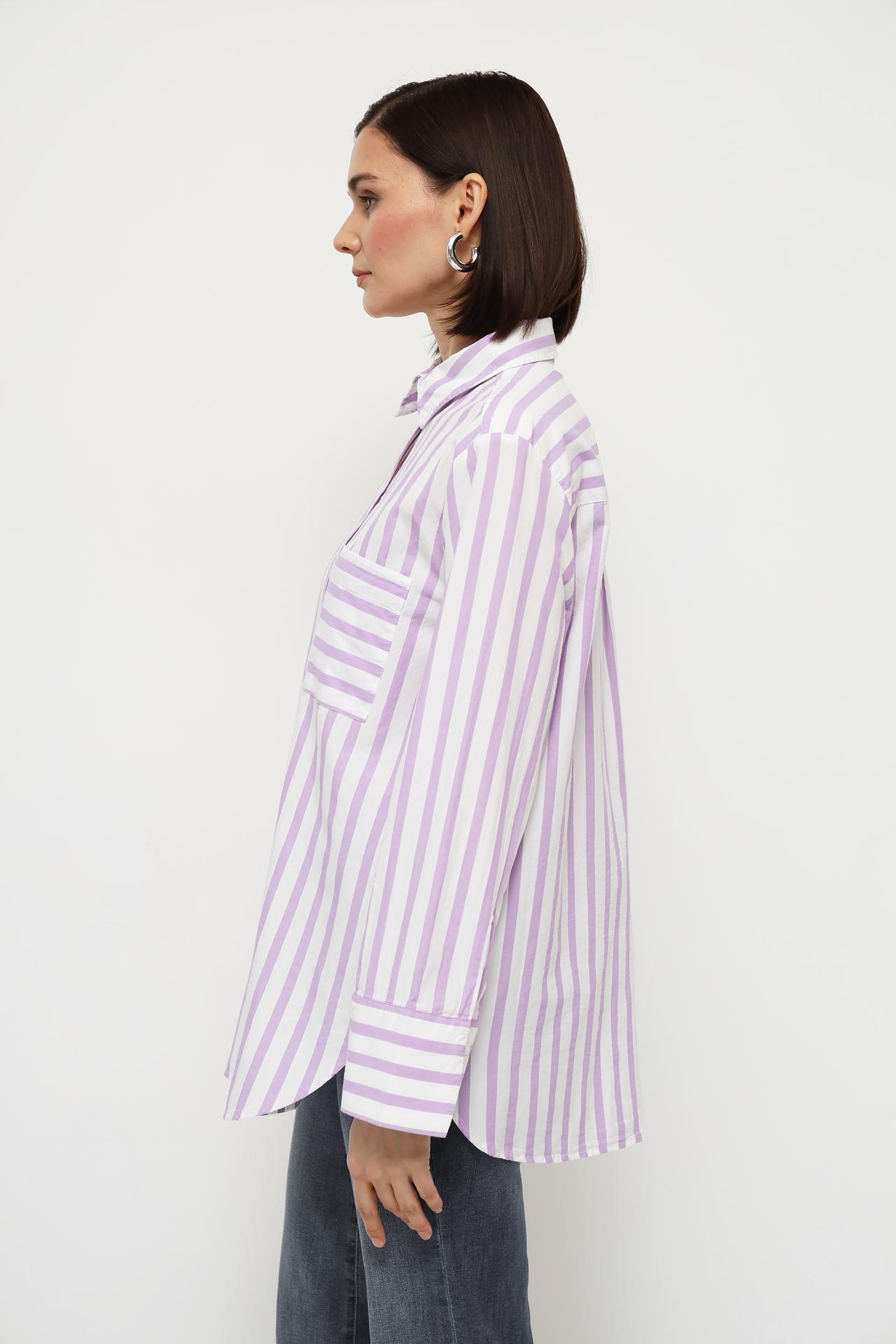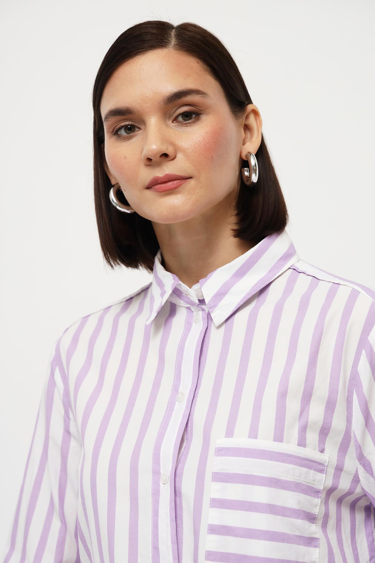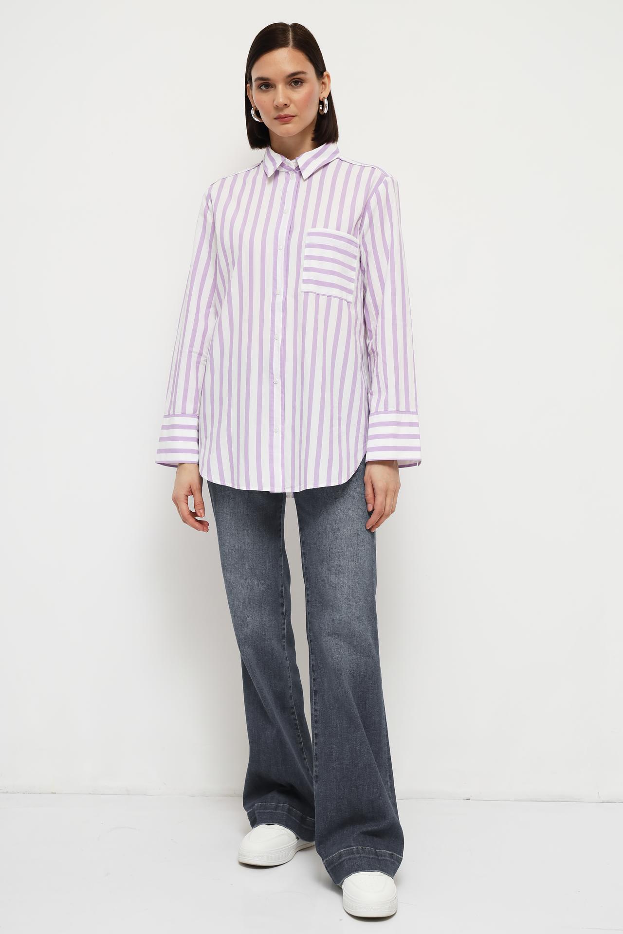 Лаконичный дизайн с вертикальными полосками визуально вытягивает силуэт, а нагрудный карман добавляет практичности. Рубашка идеально подходит для создания как повседневных, так и более элегантных образов.